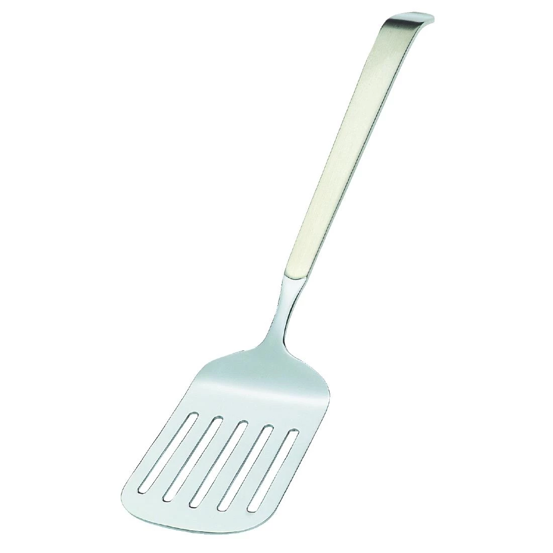 Perfect for frying, flipping and grilling, the Amefa buffet slotted spatula is an essential for any commercial catering business. The flat head can effortlessly slide under and flip ingredients cooking on a grill or pan, helping you prepare your food with ease. The slotted head also allows grease and other liquids to drain from the food and not transfer onto your customers’ plates. Constructed from stainless steel, the utensil is incredibly strong and resistant to breaking, giving you excellent results for longer. Completed with a high polish finish, the spatula is incredibly stylish, ideal for establishments where presentation is important.