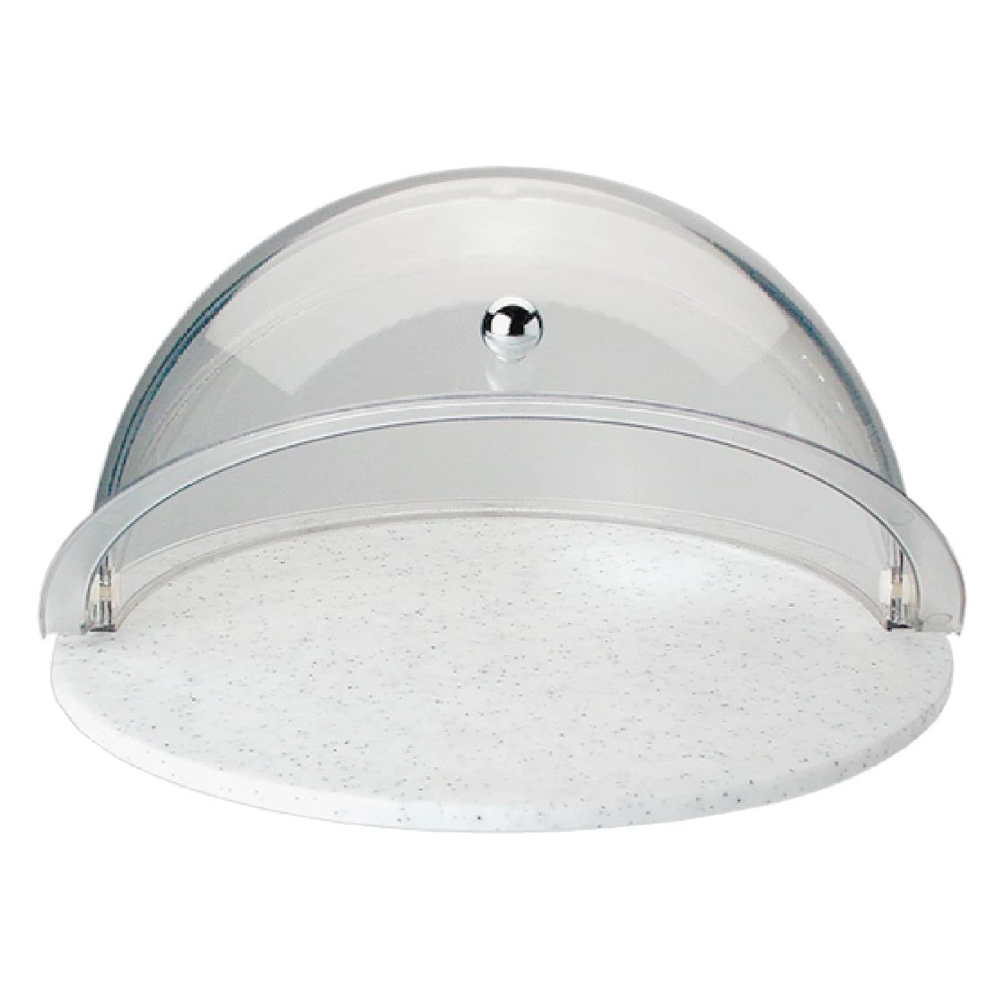 This roll top covered board is an elegant and stylish way to present food on buffets or tables. The impressive marble effect board will enhance your foods and delight your guests. The lid is easily to lift with the silver ball handle, rolling backwards smoothly and effortlessly. The clear plastic of the lid allows for quick and easy identification of contents, saving you time when you’re busy. The flat base of the board makes it very stable, reducing the risk of it falling over and getting damaged.