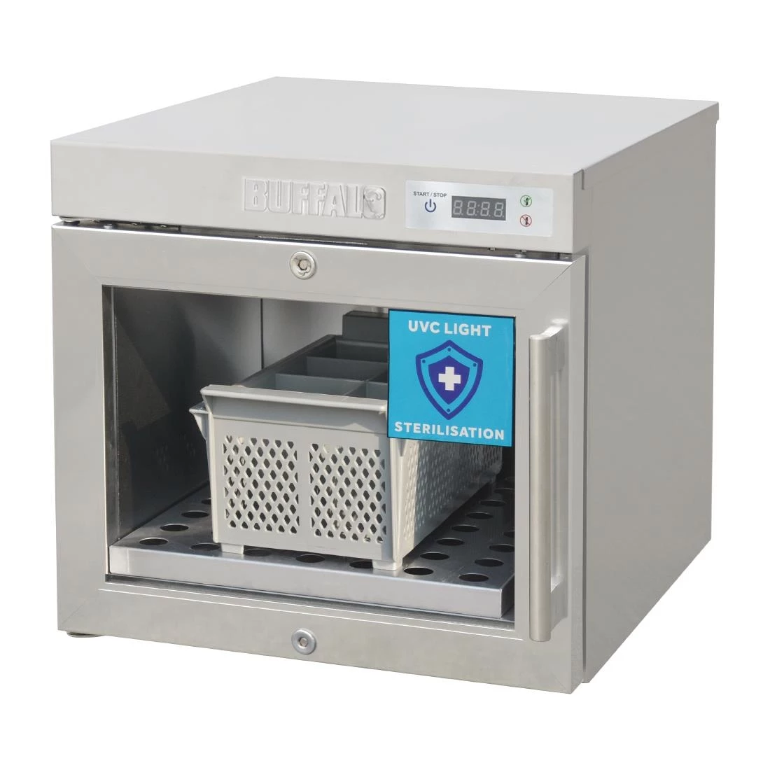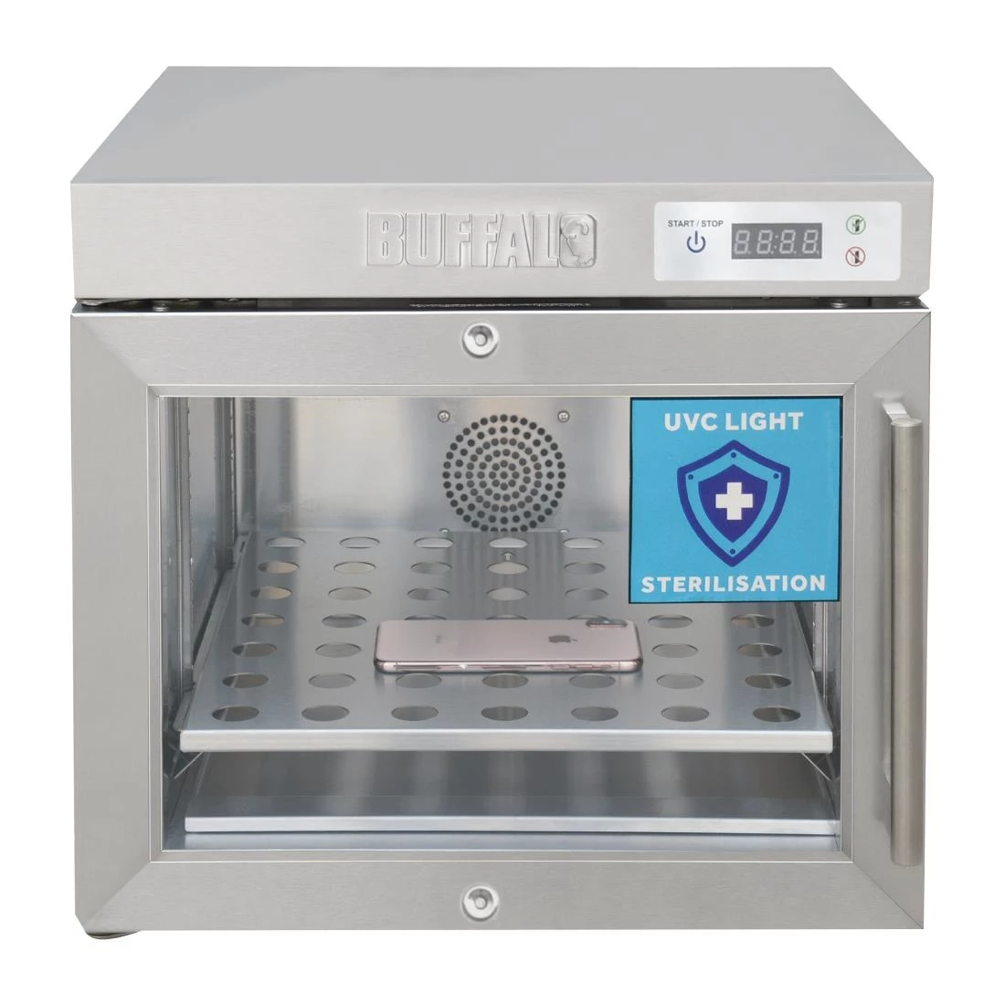 Promote your hygiene control with the Buffalo UVC Steriliser Cabinet. Compact and efficient, the Buffalo uses proven UVC lighting to quickly and effectively sterilise the contents – whether that’s hotel room keys, glasses, cutlery, utensils, mobile phones, HHTs or crockery. No harsh chemicals or temperatures are required – just the UVC lights and a short amount of time.