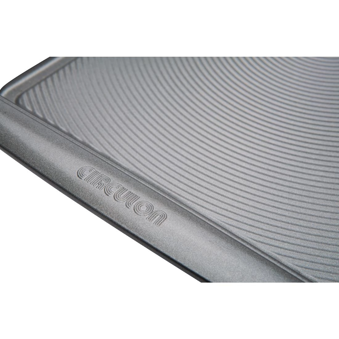 This large oven tray from Circulon has been designed for use in both domestic and commercial kitchens. A quality construction and patented Total non-stick coating ensures it can withstand constant use in any kitchen, giving you the best results time after time. Lipped handles at each end provide an easy grip, even when wearing oven gloves, making it easy to take in and out of ovens. The circular pattern on the tray is designed to stop foods sticking, making them easier to release for professional results.