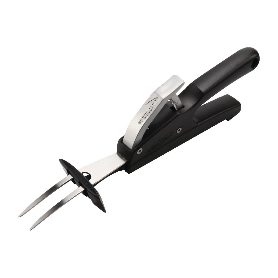 The Deglon Push & Pull service fork makes it easy to quickly complete multiple plating and service tasks with one hand, leaving the other hand for tasks such as pouring sauces or serving vegetables.