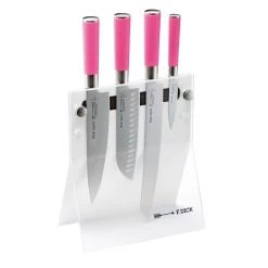 - Blades: X55CrMo14. Handles: PP/TPE. Knife Block: Acrylic glass