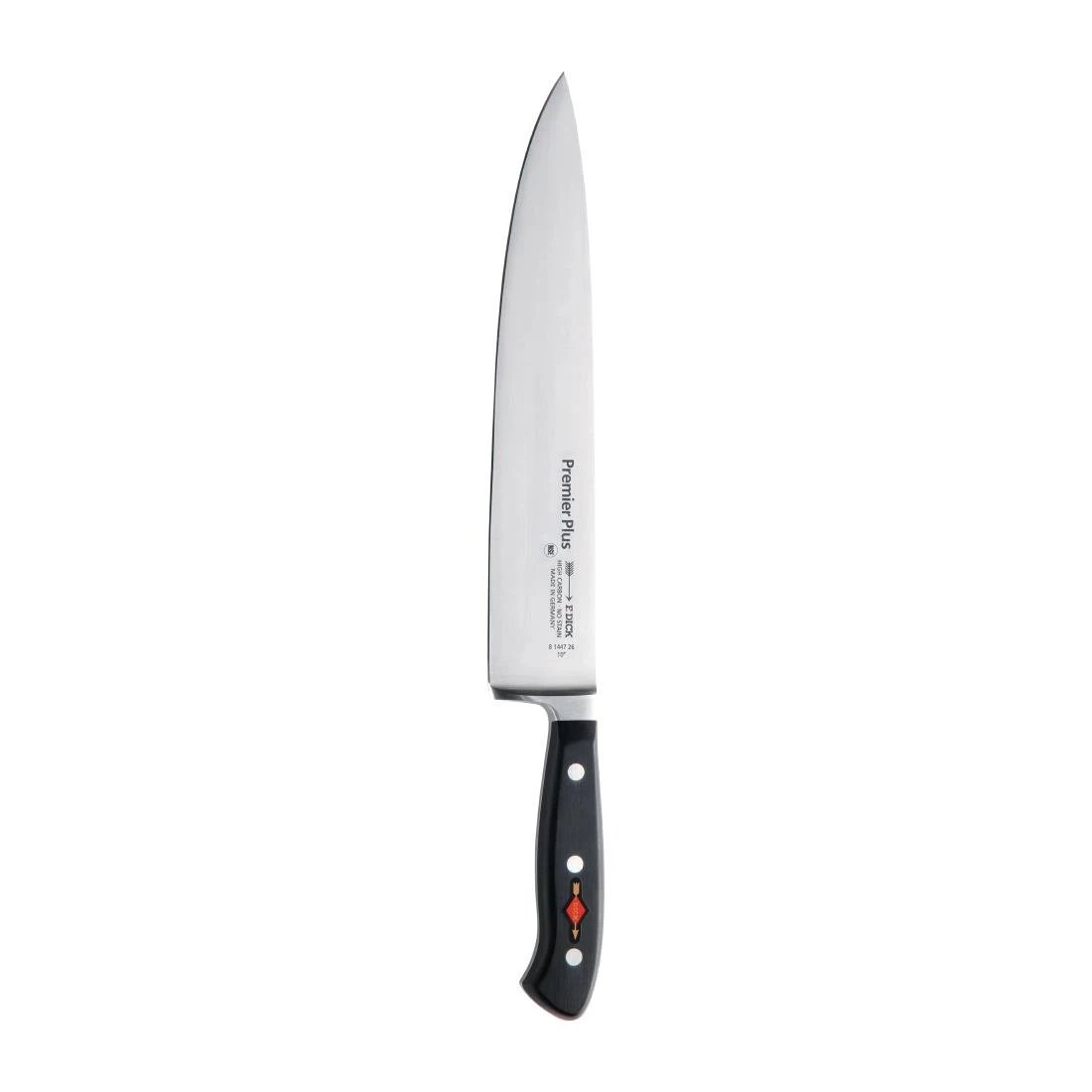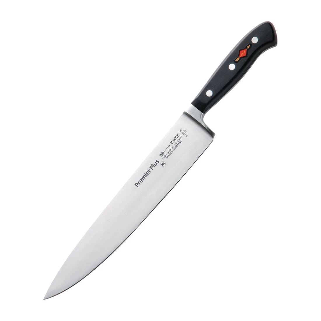 This Dick Premier Plus chefs knife has been carefully forged into a perfectly balanced and ergonomically shaped knife designed for optimum comfort. The blade is made from chromium strengthened steel for ultimate protection against corrosion and each knife has been sharpened, whetted, honed and polished by hand.