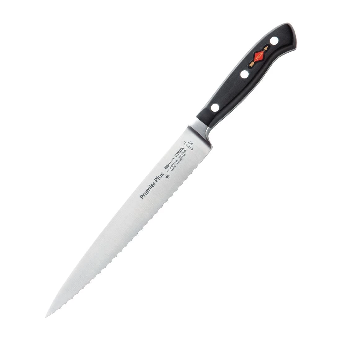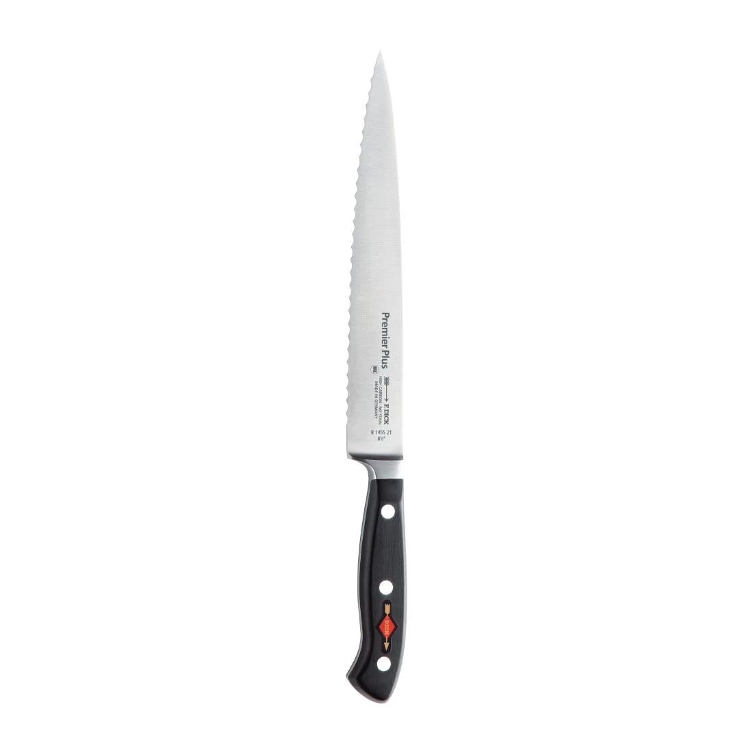 This Dick Premier Plus serrated slicer knife has been carefully forged into a perfectly balanced and ergonomically shaped knife designed for optimum comfort. The blade is made from chromium strengthened steel for ultimate protection against corrosion and each knife has been sharpened, whetted, honed and polished by hand.
