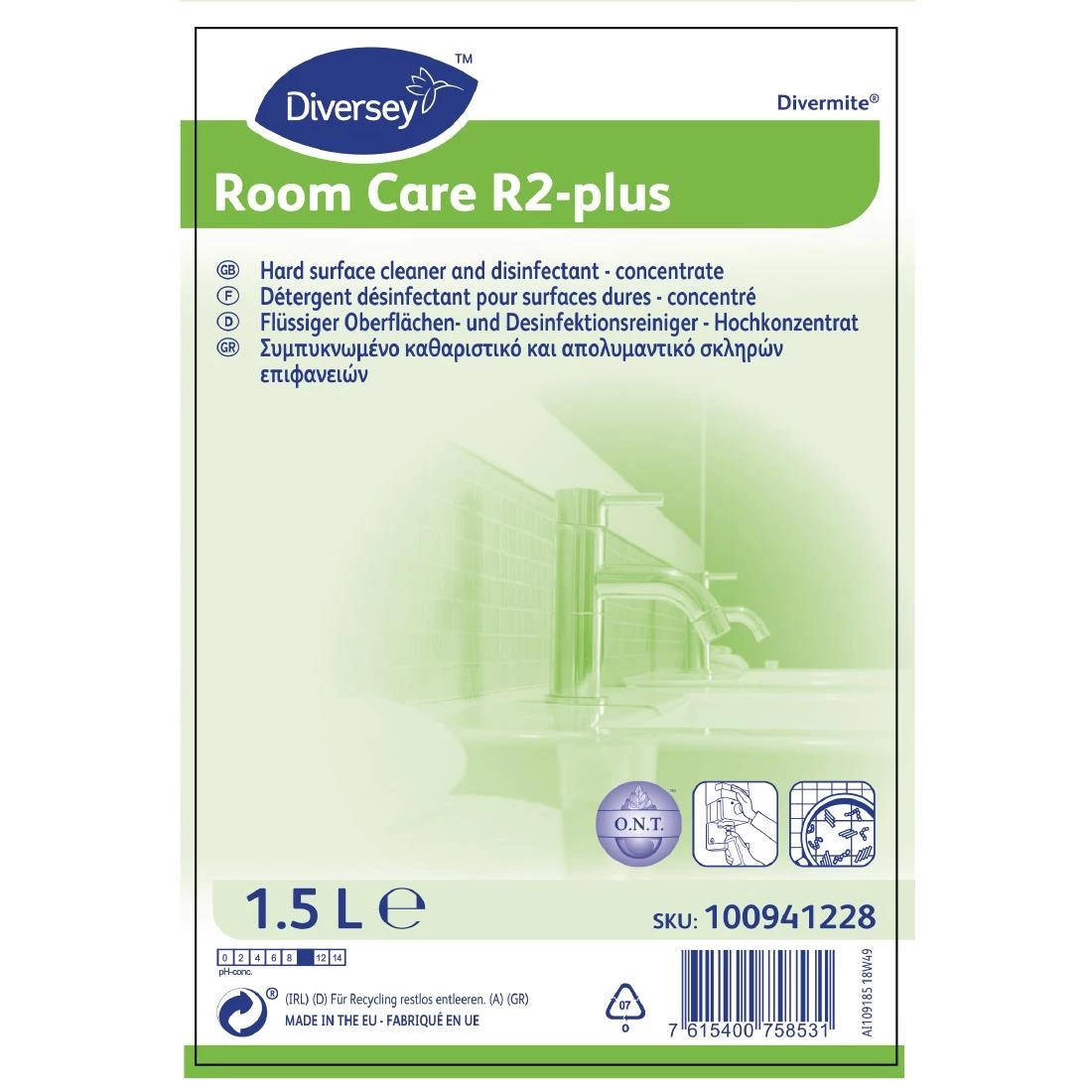 - Ideal for cleaning and disinfecting washroom and interior surfaces