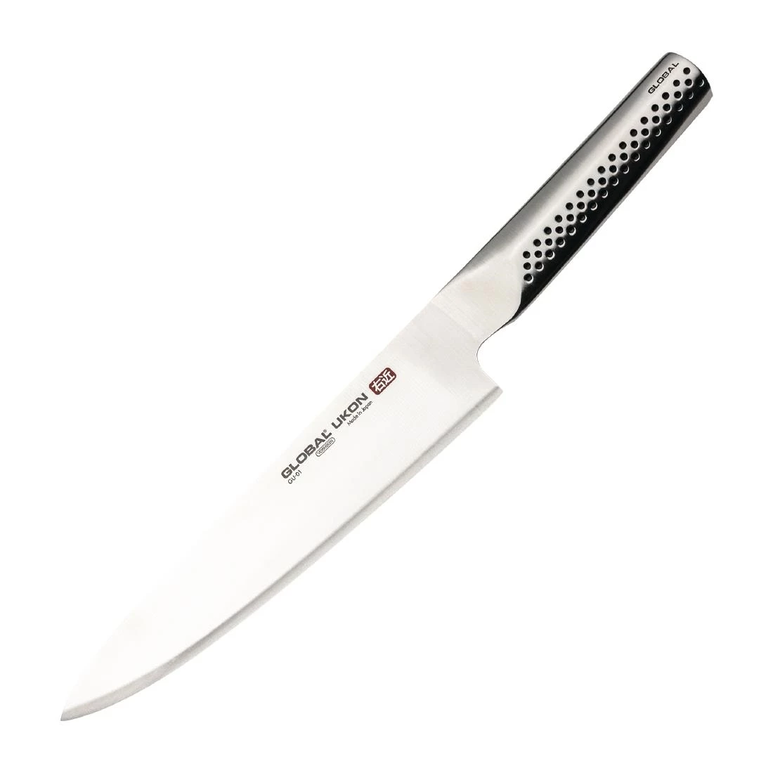 The name ¿UKON¿ has many positive connotations in Japanese legend, and in true GLOBAL tradition, the GLOBAL UKON series is constructed from the finest CROMOVA 18 Stainless Steel material and features thicker blades to enhance performance. The Global Ukon GU-01 Chef¿s Knife is a versatile all-purpose blade that excels at every cutting task you can think of in the kitchen. The GU-01 is great for chopping vegetables, meat and fish, and it can also be used to finely chop herbs or peel garlic. Whatever the task, slicing, dicing, chopping or mincing, you can rely on this chef¿s knife to perform every time.