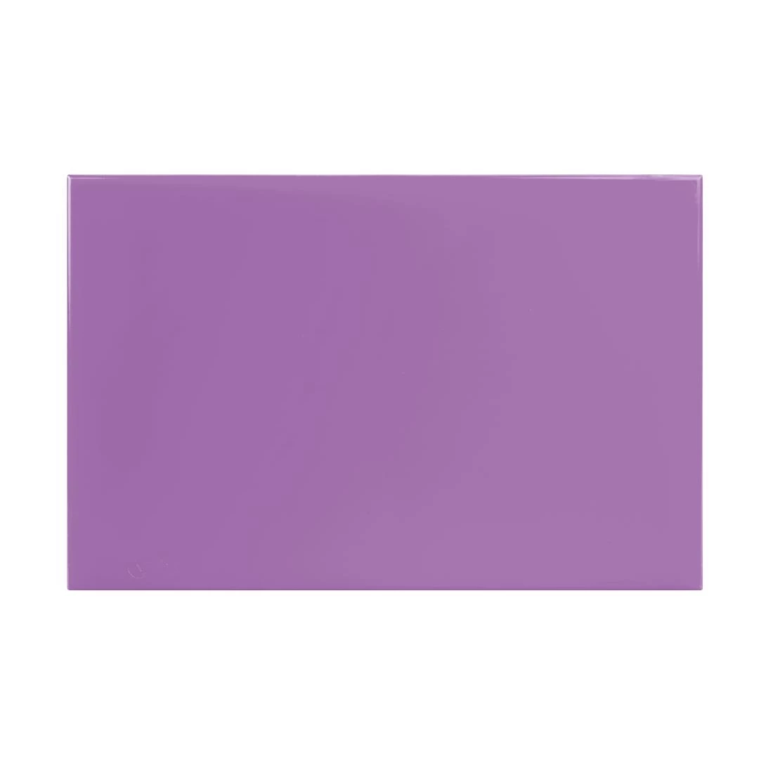 Reduce the risk of food poisoning with the Hygiplas anti-bacterial chopping board in purple. Constructed with the latest developments in plastics technology, the board prevents dangerous bacteria from spreading, helping to keep your kitchen safe and hygienic. Colour coded purple for use with allergenic ingredients, the board is instantly identifiable to help your staff use the right equipment and avoid cross-contamination. Made from high quality HDPE, the board is rigid and robust to provide a dependable surface for chopping. (Sold singly).
