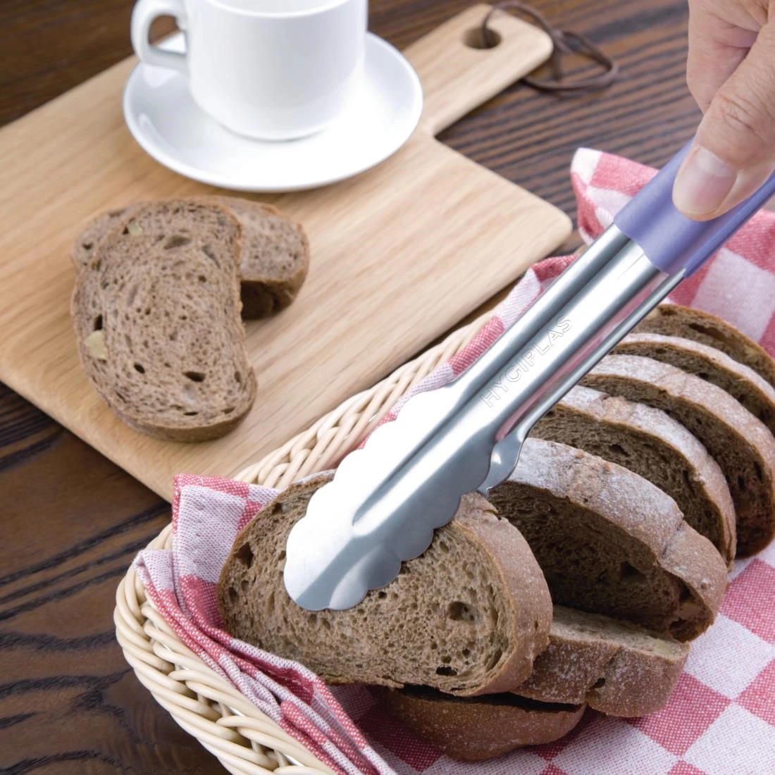 Ideal for serving ‘free-from’ dishes include gluten, these purple colour-coded tongs make part of an effective colour coding system to prevent the risks of contamination. The 300mm long stainless steel tongs are easy to clean and highly robust, perfect for use in professional catering. A vinyl coated handle ensures a comfortable and sturdy grip, allowing you to flip, turn and serve with ease.