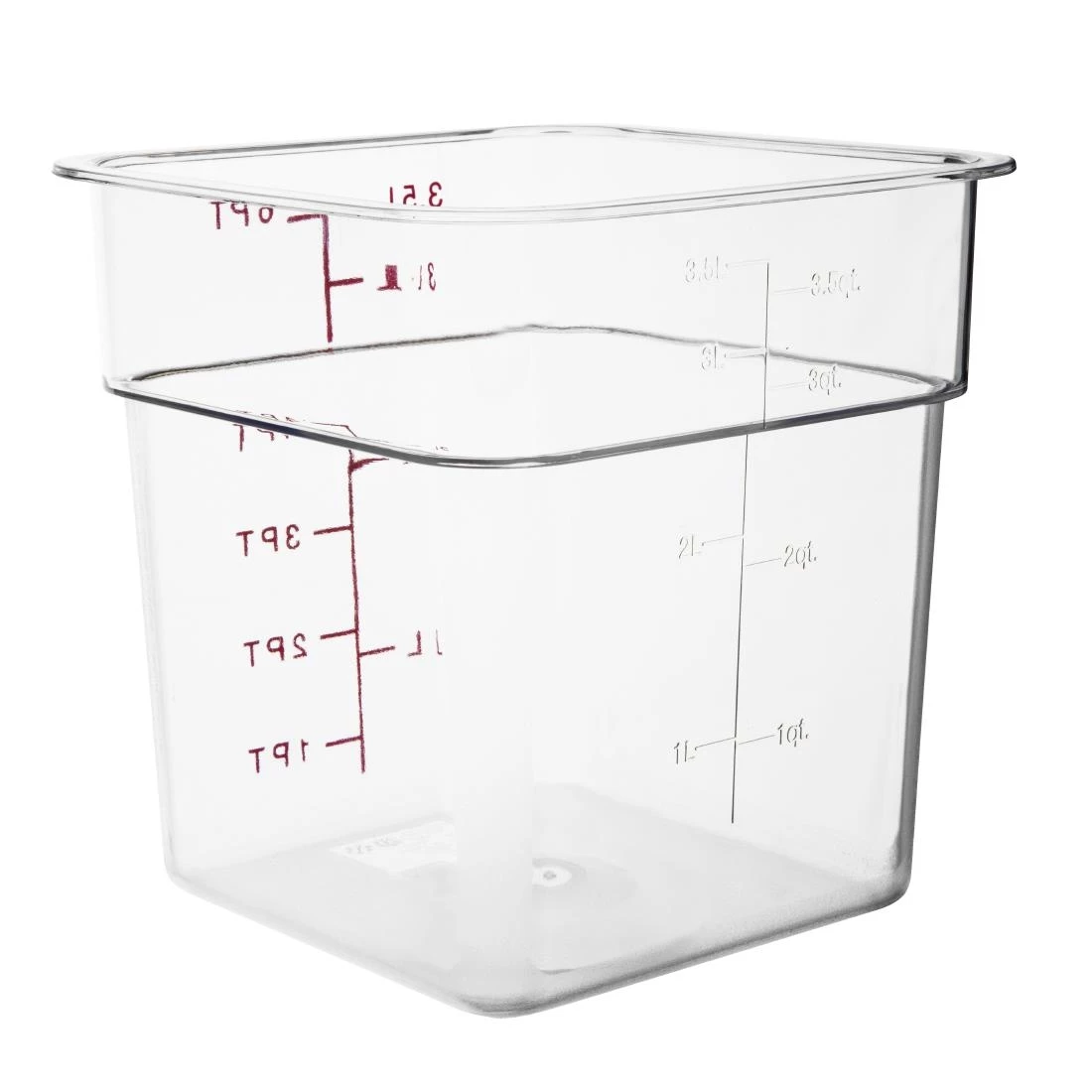 Providing a high capacity food storage solution, the Hygiplas Polycarbonate Square Storage Container 3.5 Litre is the ideal addition to any professional kitchen.