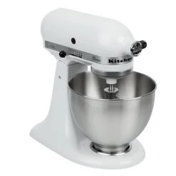 This classic stand mixer has a robust and durable metal design and a smooth rounded finish. This makes cleaning it a breeze. It’s motor is silent and long lasting, and the original planetary action provides fast thorough mixing.