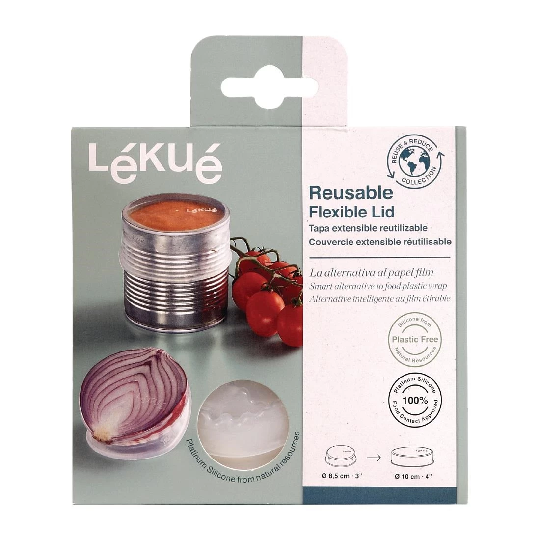 ECO non plastic stretchable silicone lid suitable for preserving multiple food stuffs, forms a hermetic seal over bowls, tins and other food vessels. Easy clean. Use and reuse time and again. 100% platinum silicone derived from sand. Heat and cold tolerant