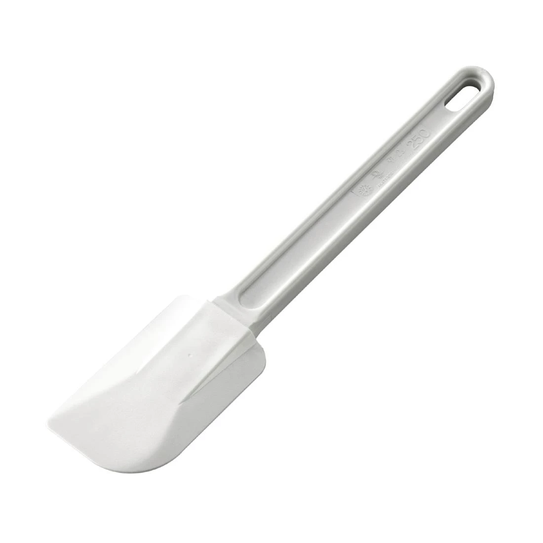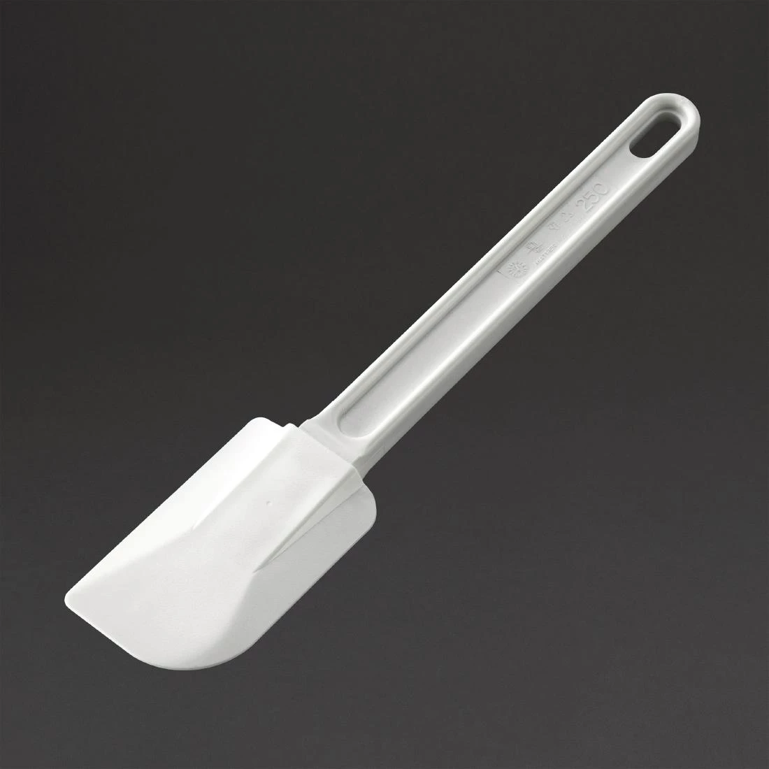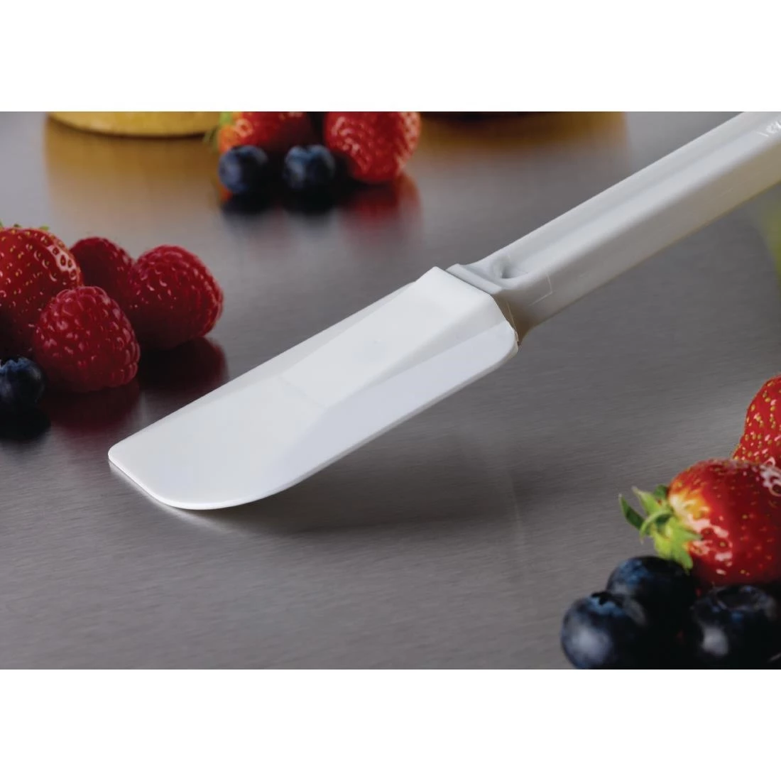 Thanks to a rigid exoglass composite handle, and thermoplastic elastomer blade this 10 inch spatula is incredibly flexible making it ideal for cold working. The spatula can resist temperatures up to 70°C too, meaning it is not limited to the preparation and mixing of cold food and ingredients.