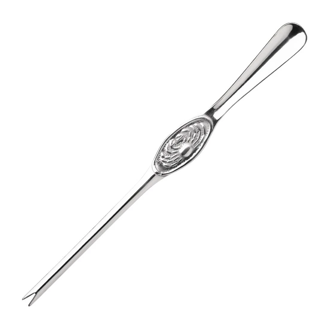 Help your customers eat every last morsel of their crab or lobster with this lobster pick from Olympia. Made from strong aluminium, the pick makes every nook and cranny of claw and pincer easy to reach. Two sharp prongs effortlessly scrape out every last bit of meat, ensuring nothing goes to waste. And it allows your customers to enjoy their meal without the hassle of picking and scraping with the wrong cutlery. The handle end also has a spoon-like design, giving it a safe end to eat from. Complete with an intricate design on the handle, this is the perfect tool to accompany succulent sea food.