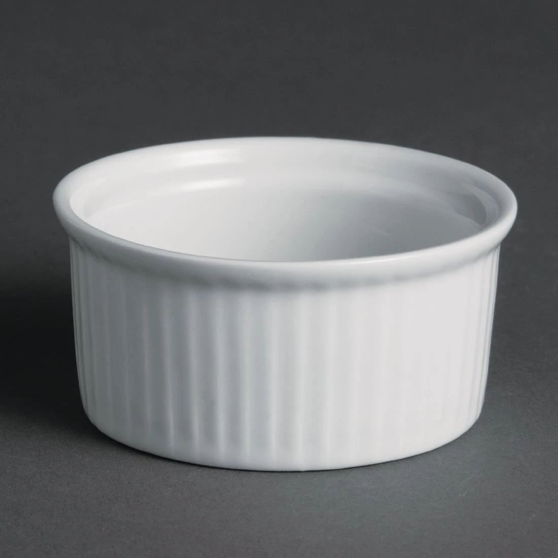 Add cost-effective and practical crockery to your table services, with these whiteware ramekins from Olympia. Strengthened, rolled edges ensure that the ramekins are chip resistant, whilst the fully vitrified body provides added durability and colour retention – making them able to withstand the rigours of the professional catering environment.