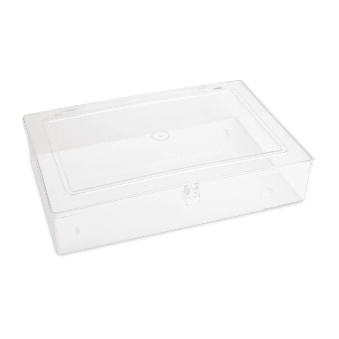 Thanks to a crystal clear polystyrene construction, this robust, stackable storage box is ideal for keeping your chocolates fresh and perfectly preserved. Featuring a tight sealing clip and strong, durable properties the 335mm wide storage box allows you to transport and store your confectionary safely, while allowing a clear view of the contents inside.