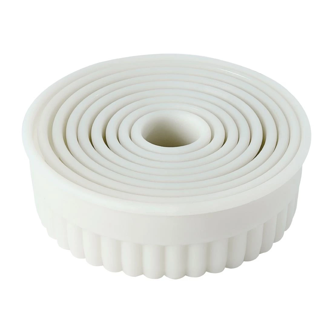 Heat resistant up to 160°C, these 9 pastry cutters are perfect for creating a range of designs on cakes and pastries. Each cutter is made from a durable and reliable nylon, and has a serrated design to create more intricate patterns. The smallest size is 20mm and they go up in 10mm intervals to 100mm.