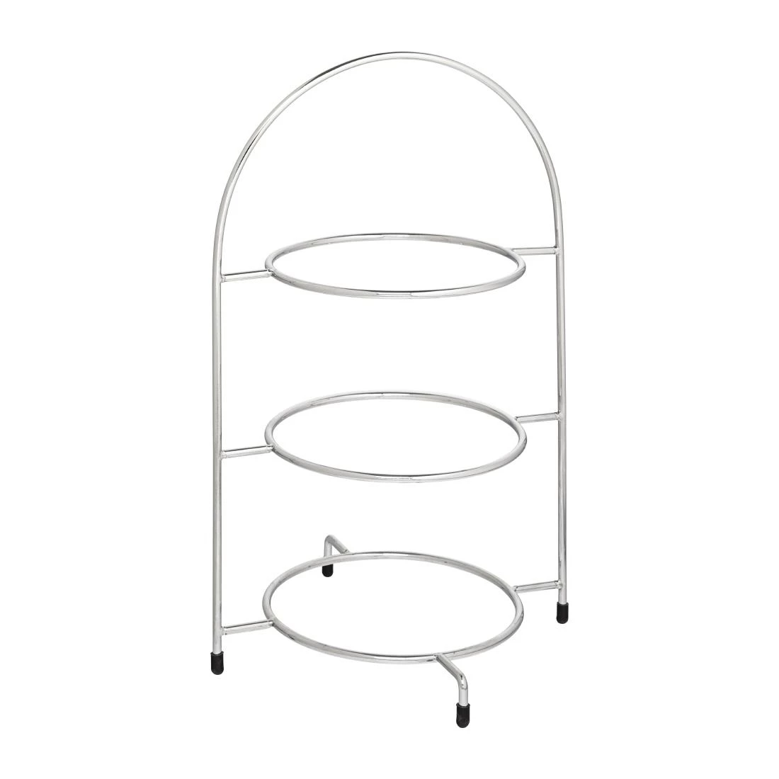 Designed to hold 3 x 230(Ø)mm plates, this cake stand from Utopia attractively displays your cakes to capture the attention of your guests and customers. The stainless steel material of the stand offers both style and strength for your cake displays.