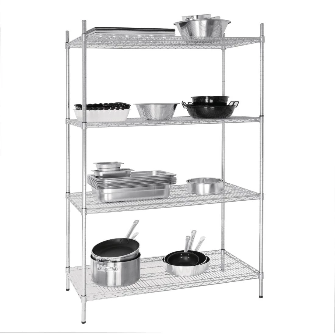 Incredibly durable and stable, the shelving kit allows you to position each shelf at the height you need, so it’s easy to fit your pots, pans and containers where they are easily accessible. Each wire shelf is made from a strong galvanised zinc with plenty of airflow so there’s no chance of any moisture build-up around items placed on the shelves – much more hygienic than solid shelves.