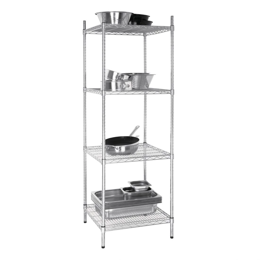 These best-selling wire shelving kits come complete with everything needed to quickly create extra storage space. They are also extendable; simply purchase components from our Vogue modular shelving selection. We stock extra uprights, shelves, baskets, castors, shelf edges and dividers. Shelving units can be assembled in minutes. Simply snap the shelf clips in position on the uprights, then drop the shelf over the uprights onto the collars and press into place, no tools are required.