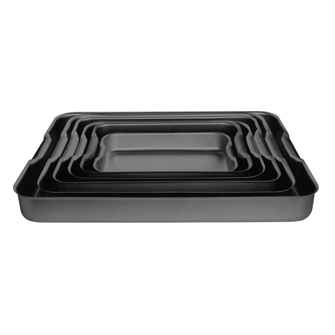 This high quality roasting pan is constructed from hard anodised aluminium, (twice as hard as stainless steel) making it incredibly robust. It is Ideal for roasting a wide range of foods such as potatoes and vegetables. Aluminium is the perfect material as it very quickly absorbs the heat and then evenly distributes it for speedy and perfectly baked results.