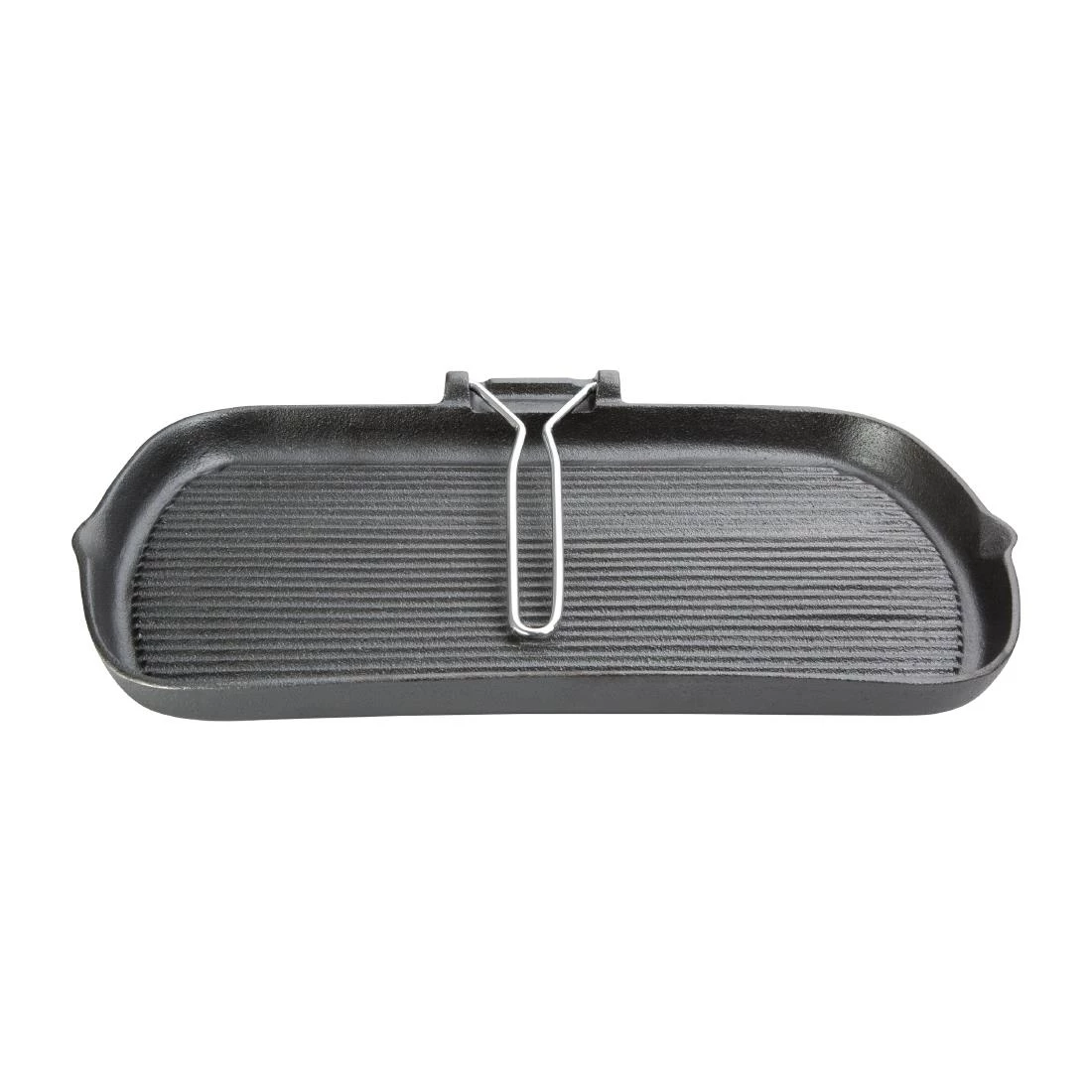 The Vogue cast iron grill pan is perfect for busy kitchens, with heavy duty construction and a fold away handle to save essential space. With a spout at each side of the pan and ridges on the bottom, fats and oils are easily drained away from the food, allowing you to create the perfect, seared finished meal with ease.