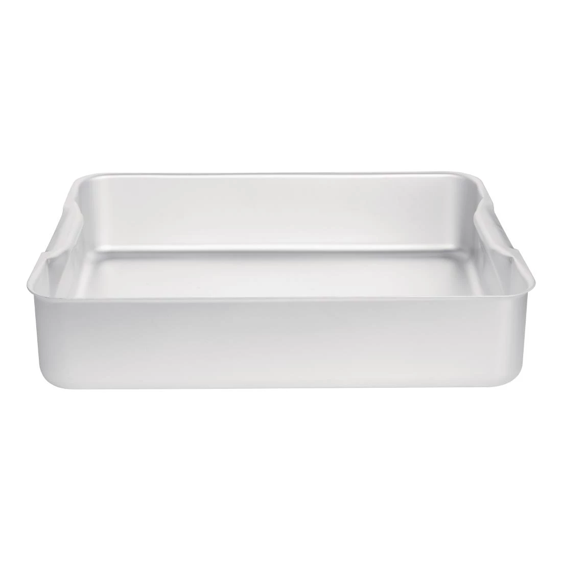 Ideal for roasting vegetables and meats, the Vogue Deep Roasting Pan has 10cm high sides, keeping contents securely inside the pan to reduce spillage accidents. The pan also features built in handles that make it easy to carry and transport, even when full of succulent meats and vegetables. Made from aluminium, the pan is strong and easy to clean, great for use in busy commercial venues.