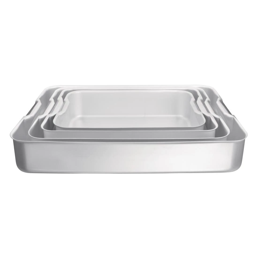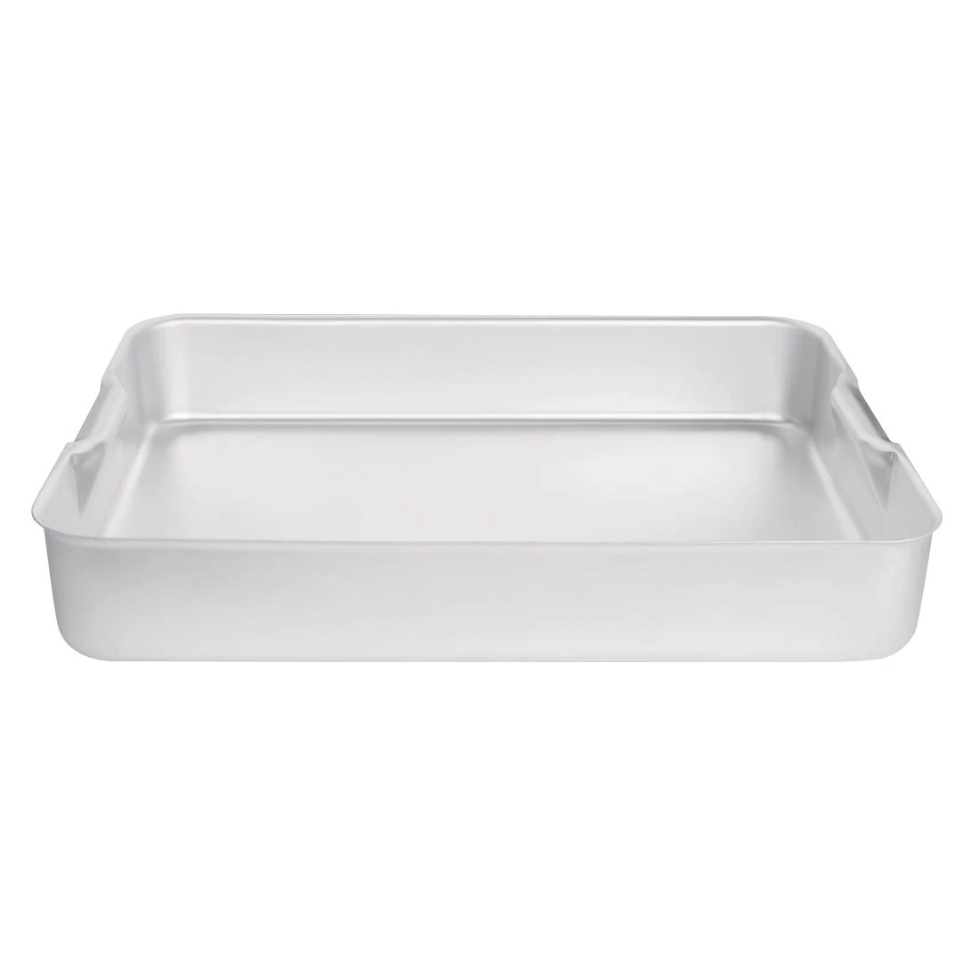 Create a banquet fit for kings with the Vogue Deep Roasting Pan. This aluminium pan is designed with a deep design to help increase capacity, fit large joints of meat and reduce the chances of spillages, helping to keep your kitchens safe. The pan is easy to clean and maintain, making it perfect for busy commercial kitchens that require quick cleaning of cookware items. Integrated handles make the pan easy to transport and move, when empty and when full.