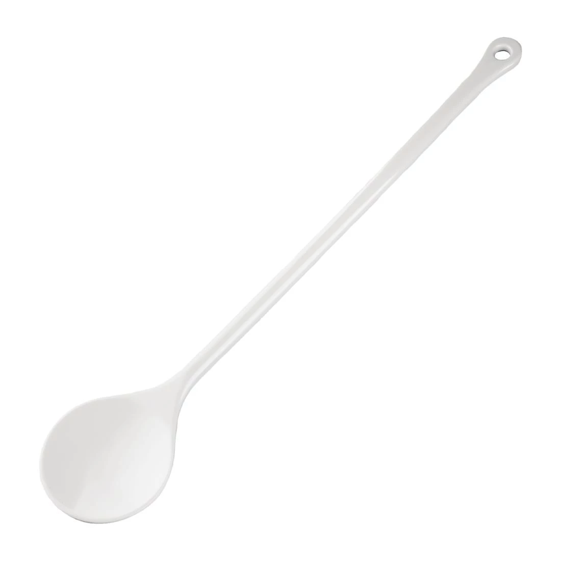 Ensure safe and efficient soup serving with the Vogue 12″ heat resistant serving spoon. Boasting a long handle, the spoon keeps hands away from heat sources at all times, helping you stir and serve soups, broths and sauces without risk of heat injury. Featuring an ergonomically designed handle, the spoon gives you complete control when plating liquids, helping you serve with expert precision. Made from premium melamine, the utensil is extremely robust and heat resistant, allowing you to use it for a variety of cooking tasks. Dishwasher-safe, the spoon is also incredibly easy-to-clean.