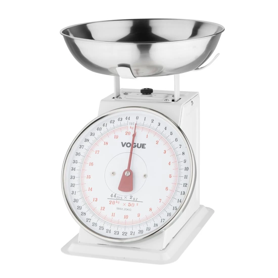 Offering exceptional durability and reliability, these Vogue 20kg heavy duty scales are essential tools for any fast-paced catering environment. Constructed from premium stainless steel, the scales are immensely strong and hardwearing, allowing them to weigh heavy food deliveries and large meats with ease. Designed for regular use, these scales are made to last, helping them cope with rigorous use in any busy commercial kitchen. An extra large removable bowl allows for quick and easy cleaning to keep them safe for use at all times. Boasting an easy-to-read dial, these scales also help you and your staff obtain precise measurements in seconds.