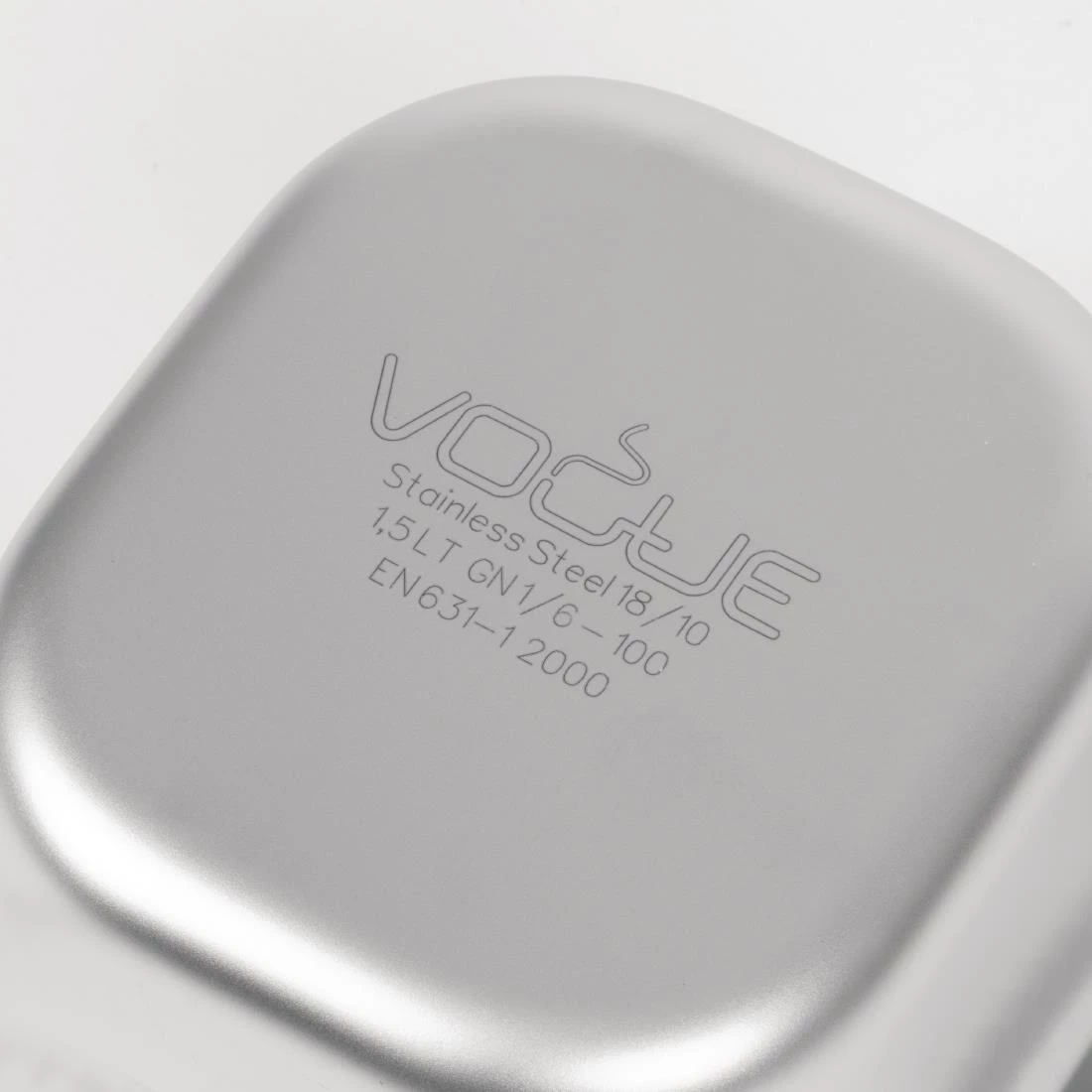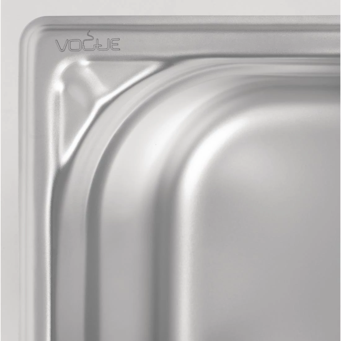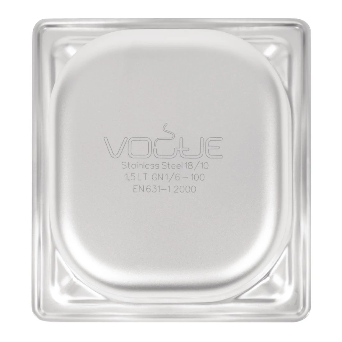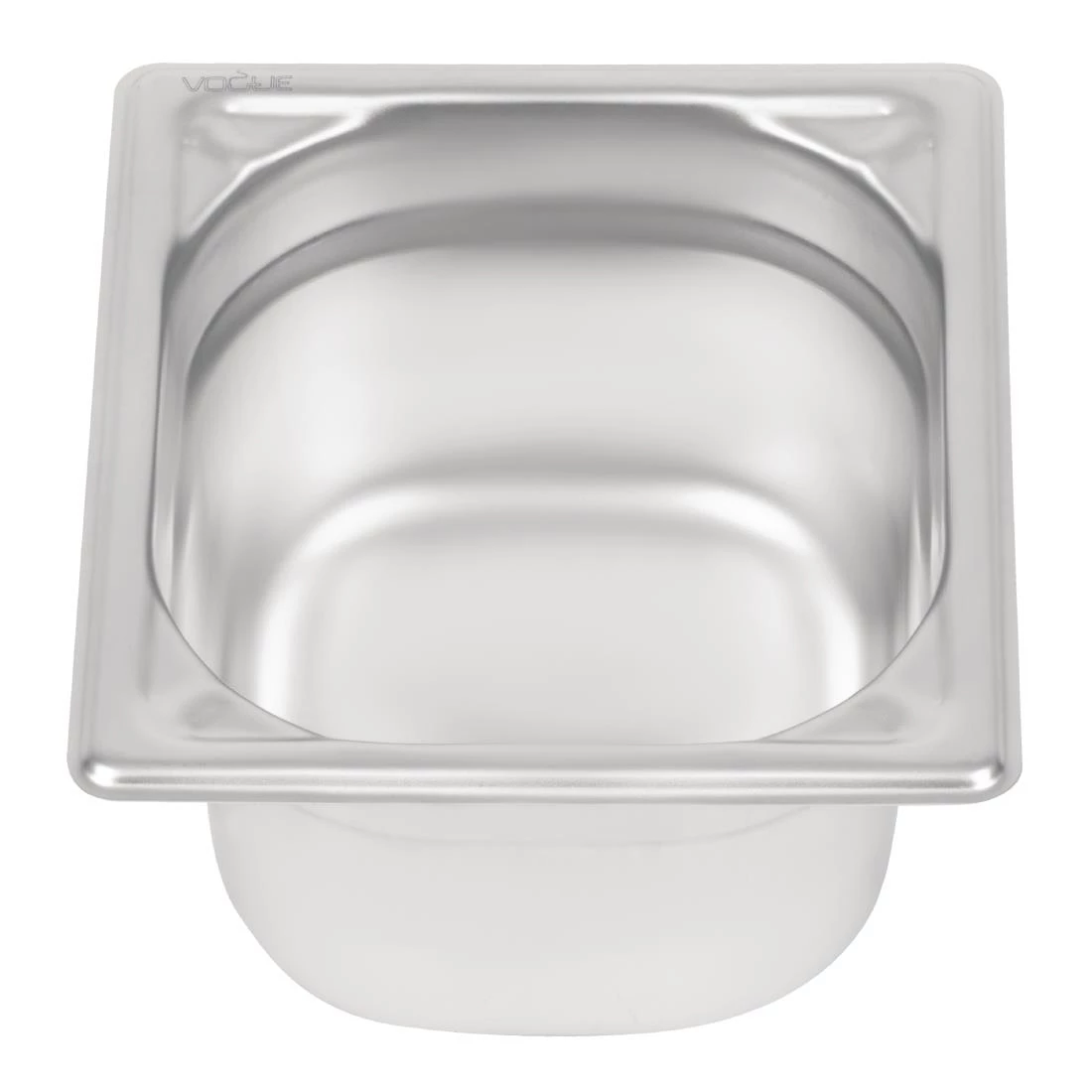 The Vogue stainless steel 1/6 gastronorm pan (100mm/1.7 litre) is the perfect gastronorm pan for storing small amounts of food.