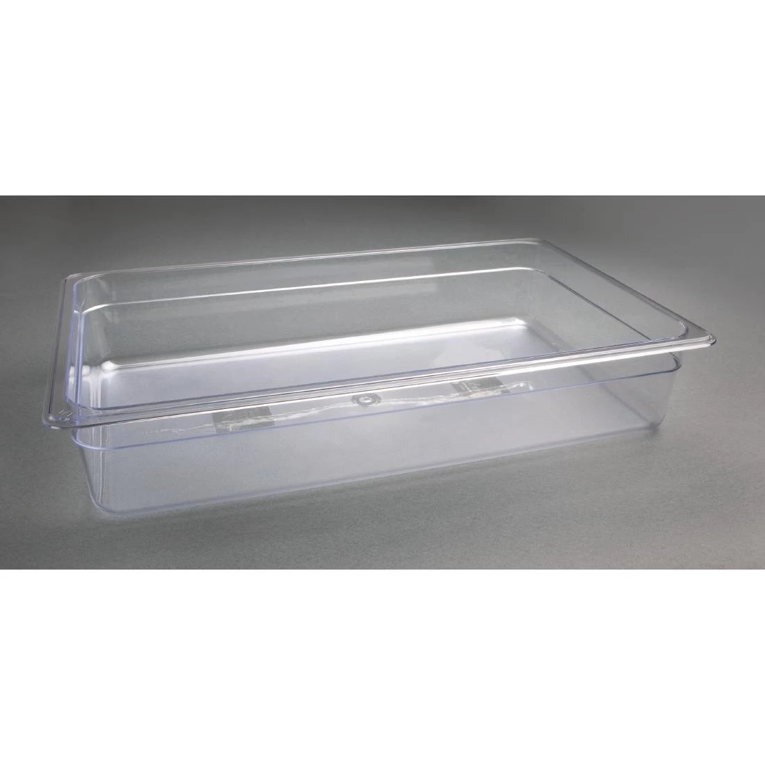 The premium grade polycarbonate plastic of the container makes it incredibly strong and ensures its long life in your kitchen, saving you money on buying replacements. The clearness of the plastic allows you to check contents quickly and easily during a busy service and save time. With a lid (sold separately), you can create a tight seal and ensure your food is fresh and protected from cross-contamination. Featuring a raised lip around the edges of the container, you can slot it into a rack or a buffet unit for easy and efficient storage. The plastic remains cool to the touch when heated up to 100 degrees centigrade, reducing the risk of burns. This container is dishwasher safe, allowing you to put it straight in your dishwasher and save time on manual washing.