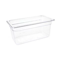 The clear Vogue polycarbonate 1/3 gastronorm container (150mm/5.1 litres) provides ideal food storage for professional kitchens.