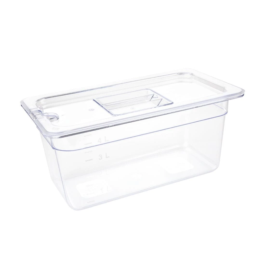 The premium grade polycarbonate plastic of the container makes it incredibly strong and ensures its long life in your kitchen, saving you money on buying replacements. The clarity of the plastic allows you to check contents quickly and easily during a busy service and save time. With a lid (sold separately), you can create a tight seal and ensure your food is fresh and protected from cross-contamination. Featuring a raised lip around the edges of the container, you can slot it into a rack or a buffet unit for easy and efficient storage. The plastic remains cool to the touch when heated up to 100 degrees centigrade, reducing the risk of burns. This container is dishwasher safe, allowing you to put it straight in your dishwasher and save time on manual washing.