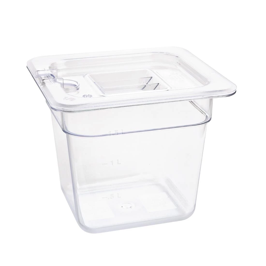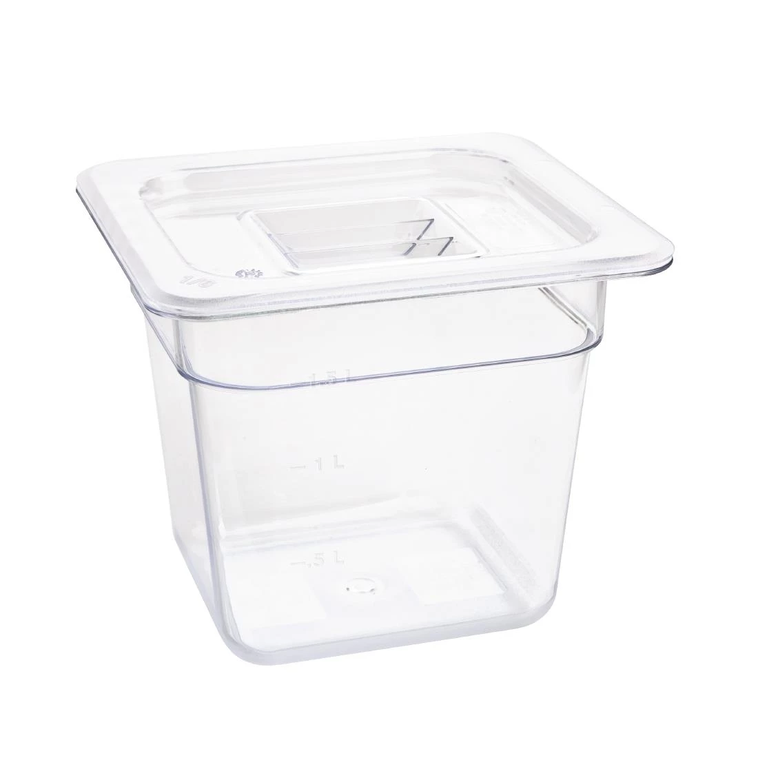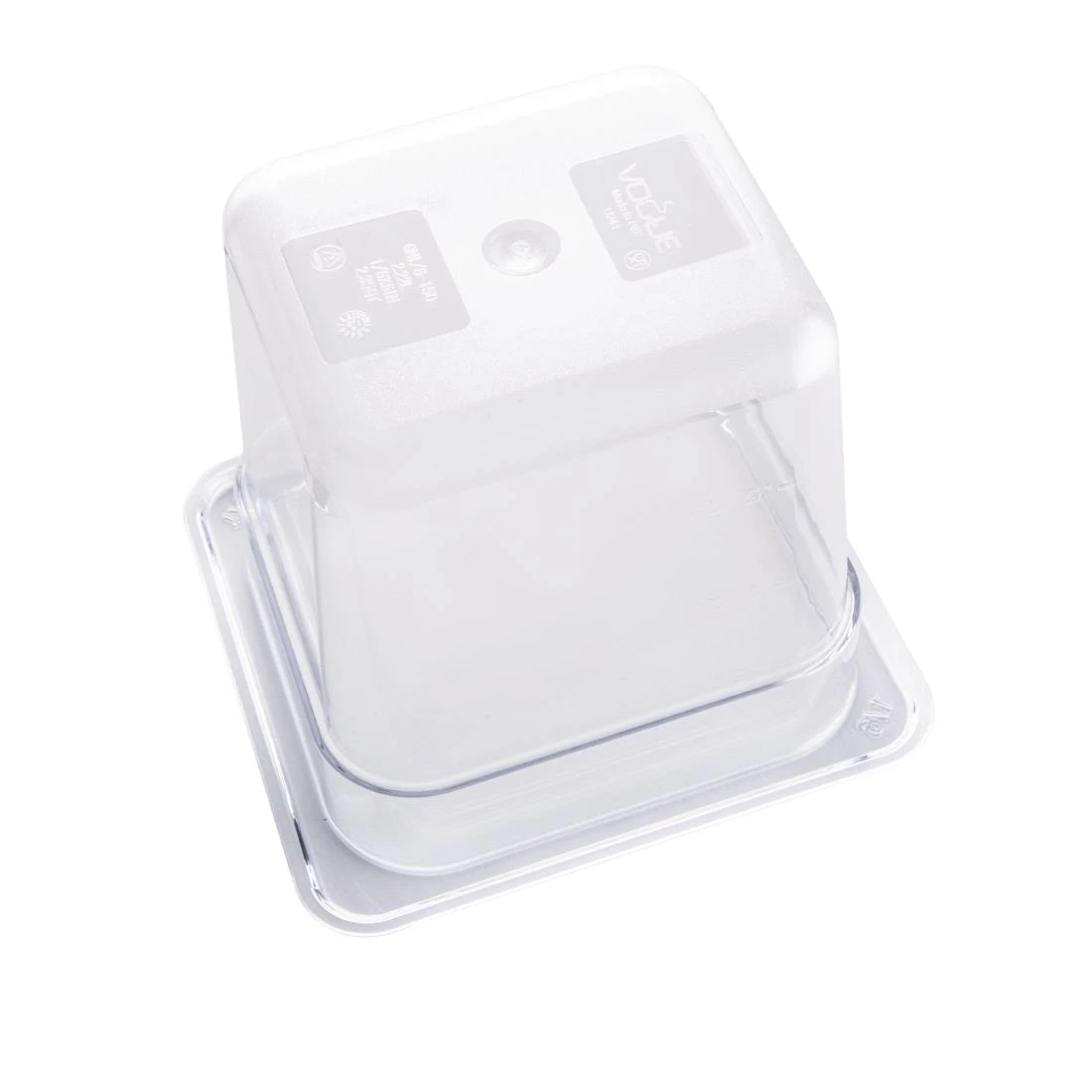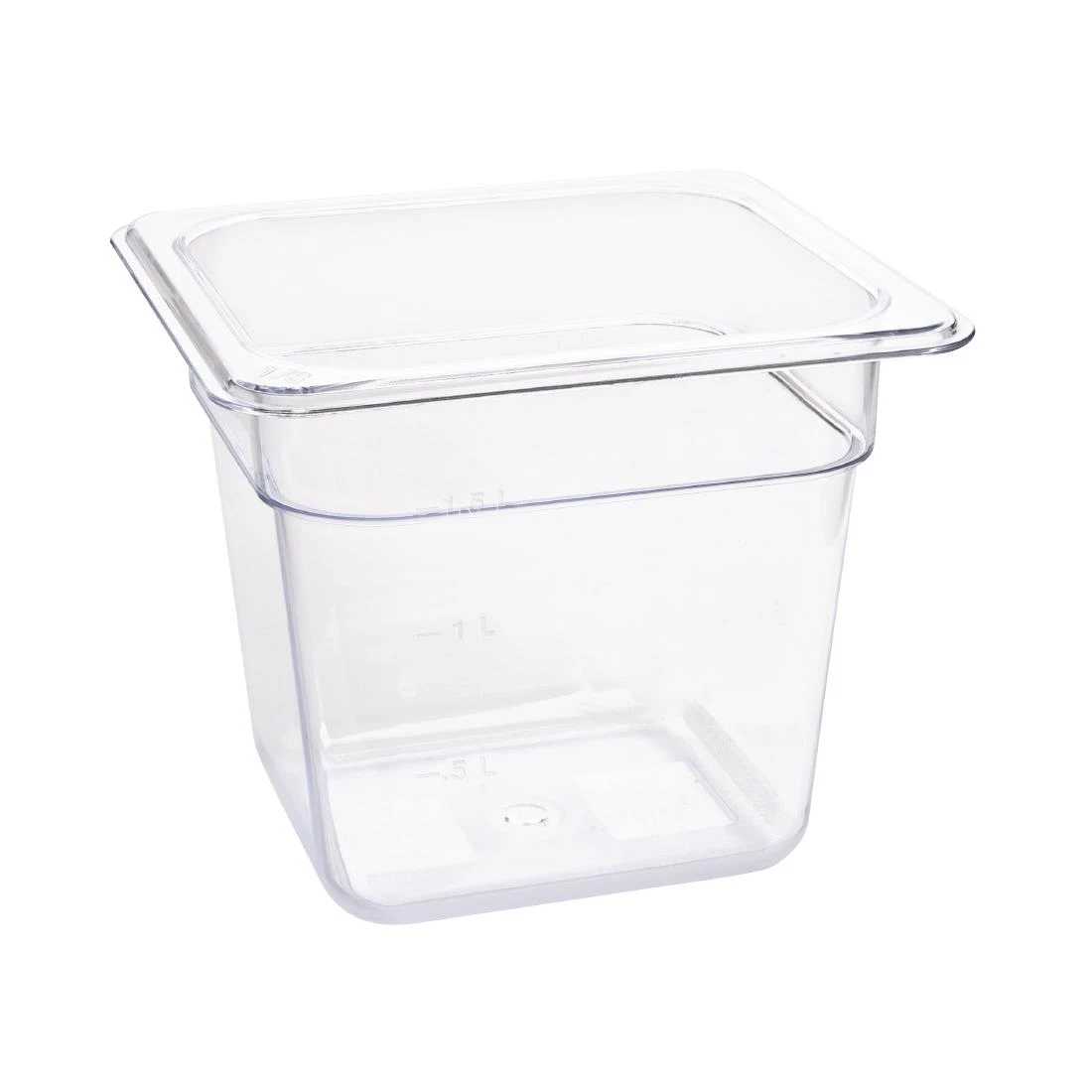 Provide your professional kitchen with the ideal food storage solution, with this Vogue polycarbonate 1/6 gastronorm container (150mm/2.3 litre). Providing a reliable and convenient option for food storage and service in a professional catering service.