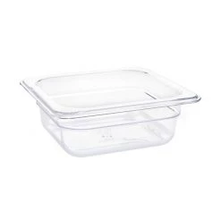 The premium grade polycarbonate plastic of the container makes it incredibly strong and ensures its long life in your kitchen, saving you money on buying replacements. The clearness of the plastic allows you to check contents quickly and easily during a busy service and save time. With a lid (sold separately), you can create a tight seal and ensure your food is fresh and protected from cross-contamination. Featuring a raised lip around the edges of the container, you can slot it into a rack or a buffet unit for easy and efficient storage. The plastic remains cool to the touch when heated up to 100 degrees centigrade, reducing the risk of burns. This container is dishwasher safe, allowing you to put it straight in your dishwasher and save time on manual washing.