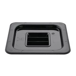 This lid covers 1/6 size Vogue polycarbonate gastronorm containers, keeping food fresher for longer and safe from contamination. Constructed from strong polycarbonate plastic, the lid is very robust and durable and capable of standing up to your kitchen’s demands. The plastic material is non-stick for easy food release and easy cleaning. The plastic is coloured in black for colour-coding your kitchen and reducing the risk of cross-contamination. The plastic is also partly see-through for immediate identification of contents, saving you time during busy service.