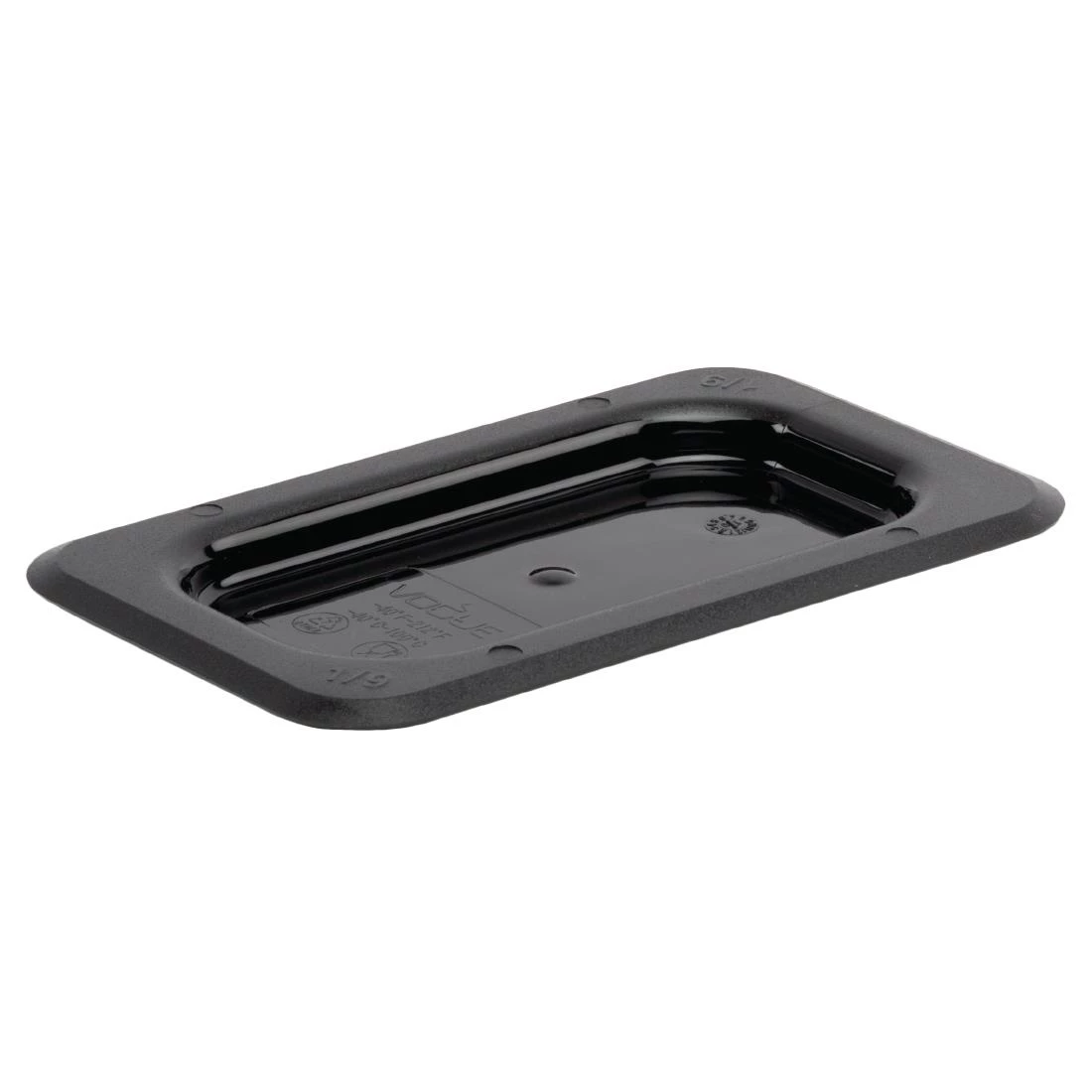 Keep your gastronorms covered, with this Vogue polycarbonate 1/9 gastronorm lid in black.