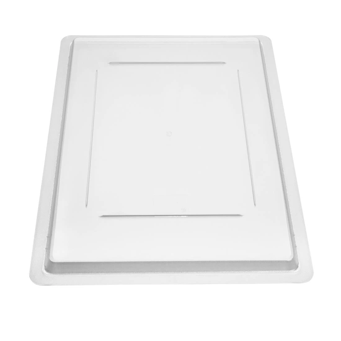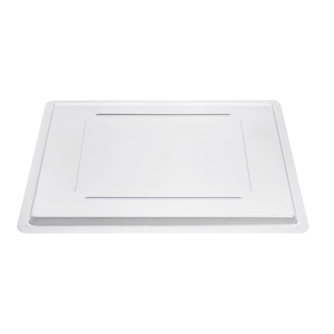 Designed for optimal practicality and functionality, this large Vogue polycarbonate lid is perfectly suited for use in any fast-paced commercial catering environment. Built for use with the Vogue 30 and 45Ltr polycarbonate containers (Product Codes: CG986 & CG987), the lid forms an exceptionally tight seal over your storage equipment, helping to preserve the taste, texture and freshness of your ingredients for longer. A clear design also allows you to effortlessly view the contents of each container, allowing for quick identification of each ingredient and the easy monitoring of your stock levels. Boasting a premium polycarbonate construction, this lid is also remarkably durable and dishwasher-proof, guaranteeing a long-lasting life while enabling rapid cleaning.