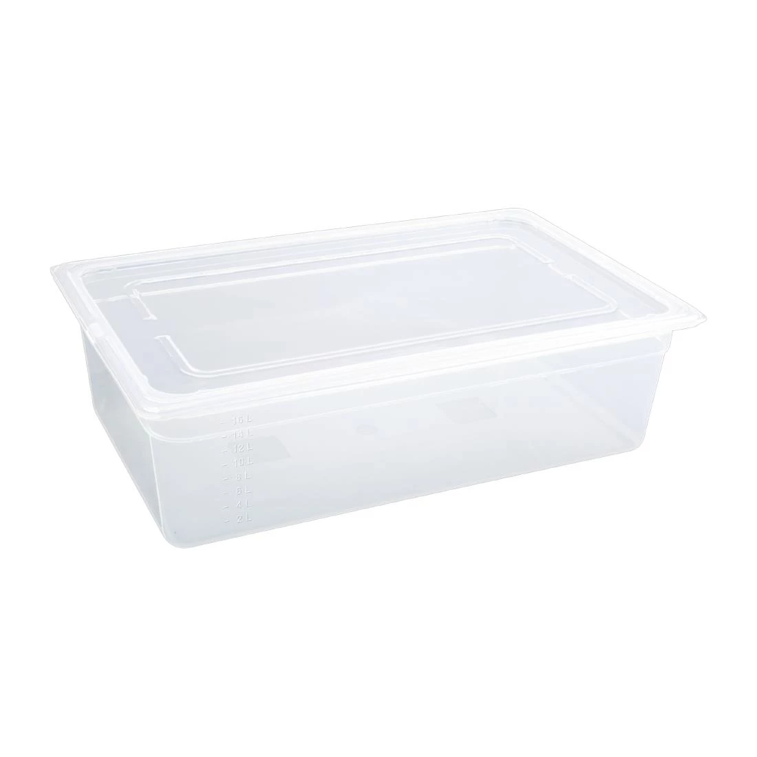 Offering efficient and convenient food storage in professional kitchens, the Vogue polypropylene 1/1 gastronorm containers (150mm/19.5 litre) are the perfect storage companion to any professional kitchen.