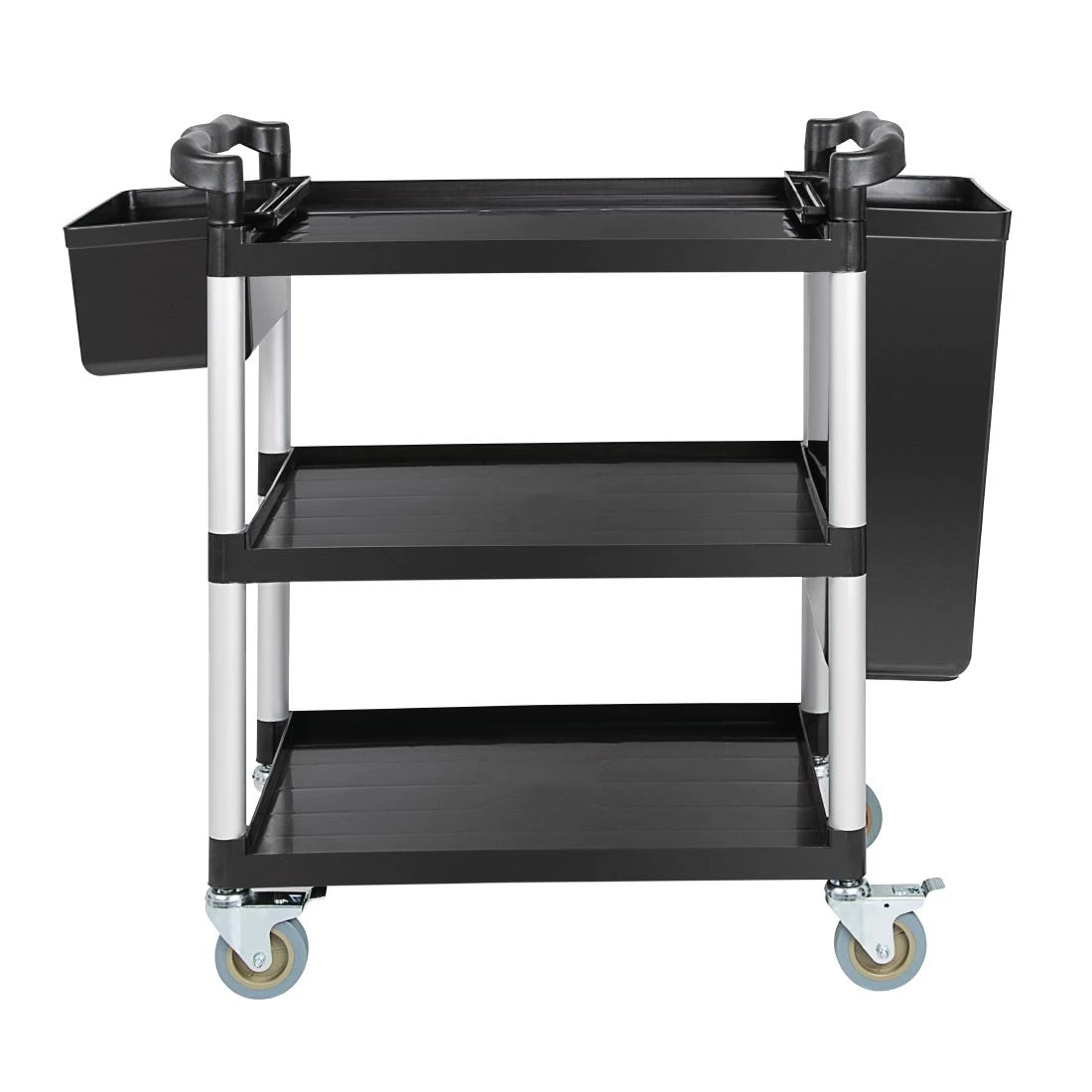 Whether you’re transporting plates, refuse, small appliances or laundry, the Vogue small mobile trolley is a reliable solution for lightening the load.