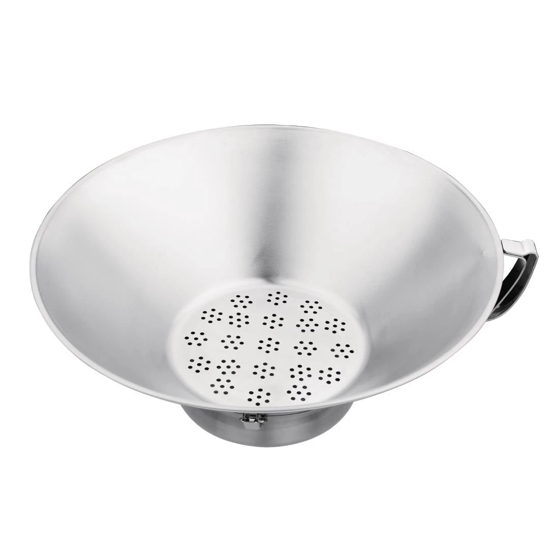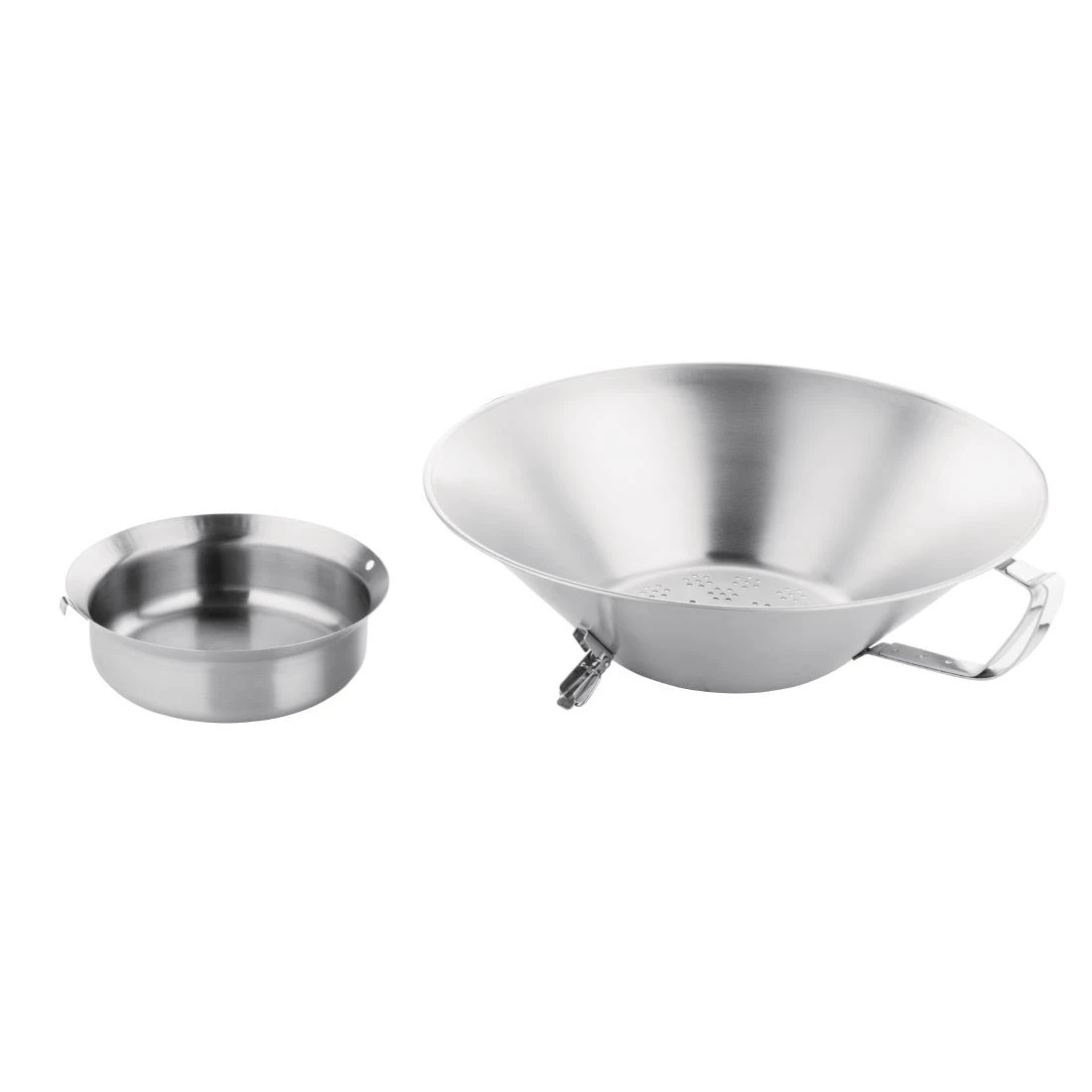 Effortlessly drain chips and potatoes with the high quality Vogue potato chip drainer. Boasting an incredibly large capacity, the utensil drains vast quantities of chips quickly and easily, speeding up your serving times and ensuring you plate perfectly prepared food. A convenient removable drainage pot prevents spills and allows for an easy clean-up after use. Constructed from sturdy stainless steel, the drainer is also immensely durable and hardwearing, allowing it to withstand rigorous use in any commercial kitchen.