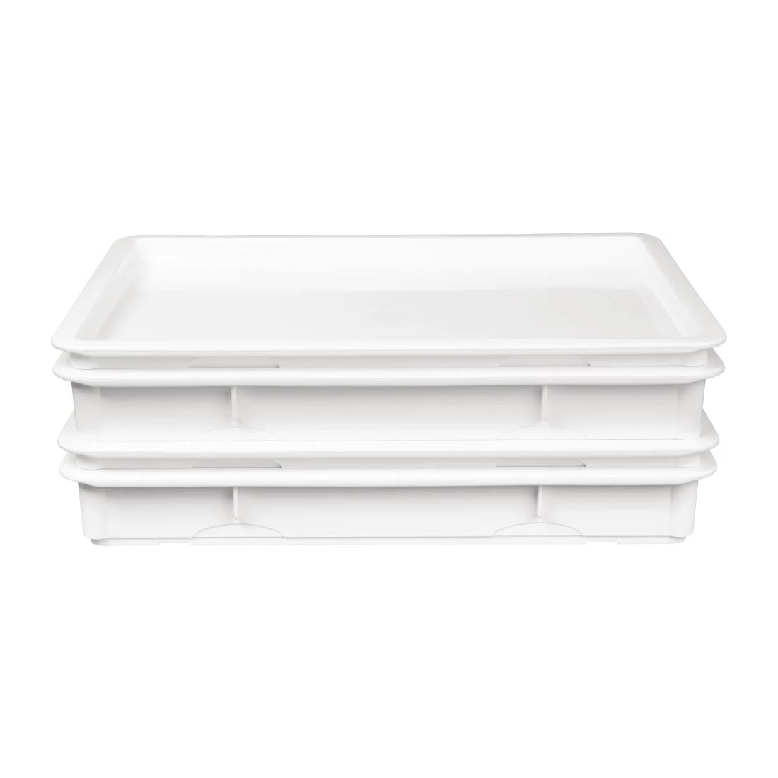Dough box used for storing, transporting and proofing dough. Large size; plenty of room for dough to breathe. Stackable for storage and for during use. Clean white colourway. For use in bakeries, cafes, restaurants.