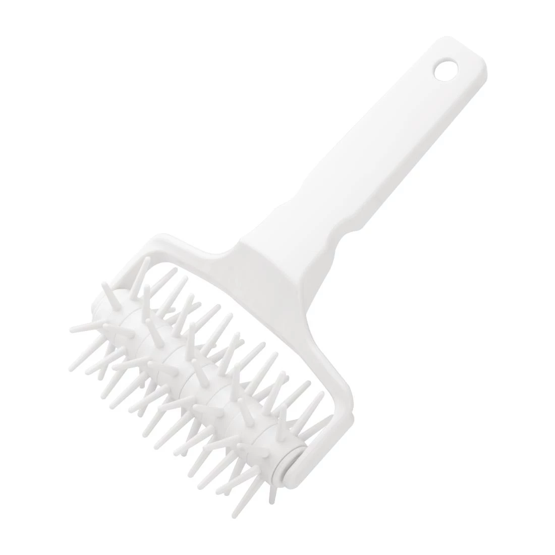 Prevent dough from over rising or blistering with the Vogue roller dock. With spiked rolling pins, holes are effectively poked into bread dough, pizza dough, pastry and more to help you get the perfect bake. Made from an easy to clean and durable plastic, the docker is perfect for use in both domestic and commercial kitchens.