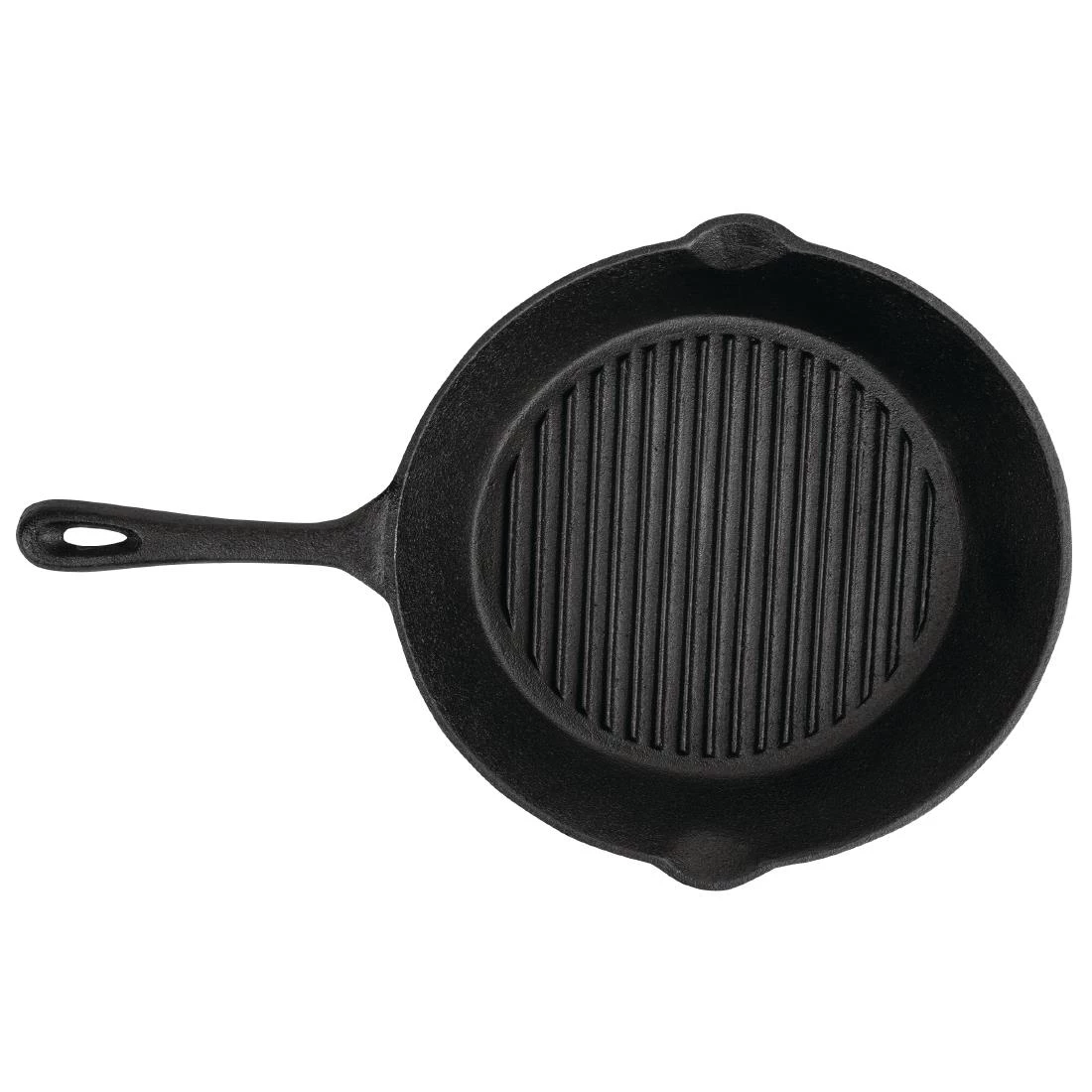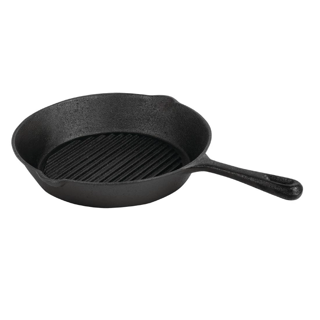 Frying, searing or browning foods? Using this cast iron skillet from Vogue makes it easier than ever to achieve perfect results. The skillet’s ribbed cooking surface leaves an attractive seared finish – your food will look as good as it tastes. It’s a healthy option too, thanks to the deep ridges that keep your food above any excess oils or fats during the cooking process. Made from incredibly strong cast iron, the 10½” skillet is a dependable choice that is built to last.
