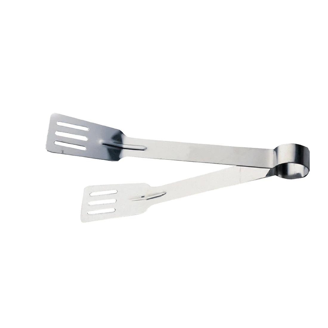 Offering a reliable grip at all times, these dependable 9″ sandwich tongs from Vogue are essential for any cafes, bakeries or hotels. Boasting two robust heads and a secure handle, the tongs give you complete control when turning paninis or reaching sandwiches in displays, helping you move and serve food with ease. Constructed from quality stainless steel, the tongs are exceptionally durable and robust, making them perfectly suited to any busy commercial catering business. These kitchen essentials are also dishwasher-safe for quick and easy cleaning.