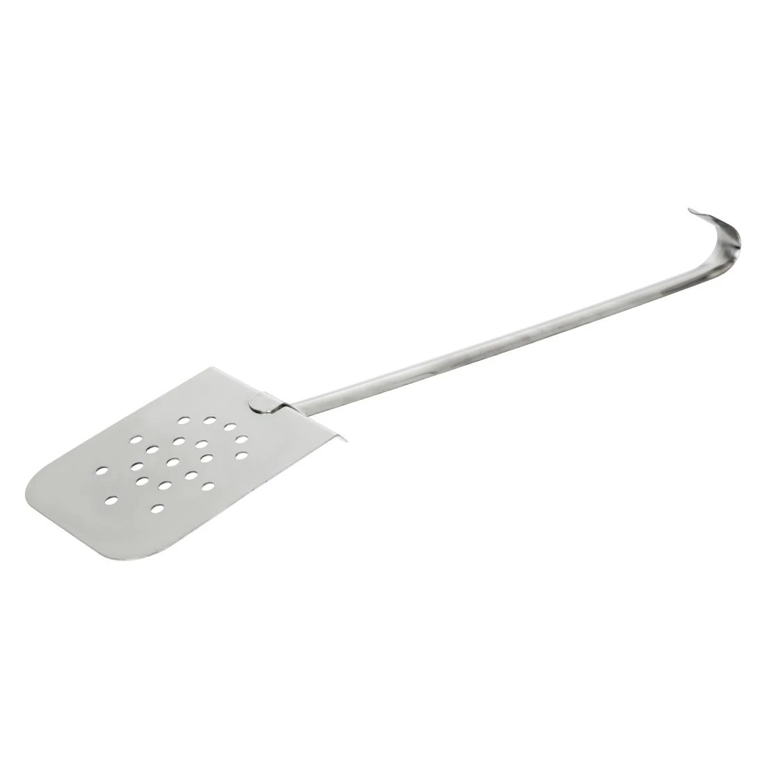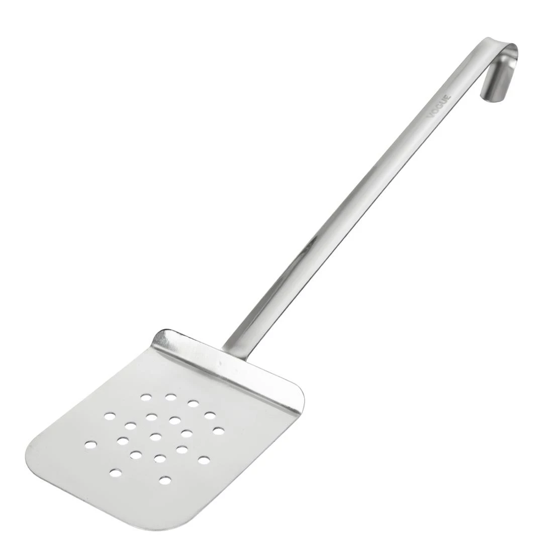 Serve delicate foods with expert precision, thanks to the Vogue small fish and egg slice. Produced with a wide stainless steel flat head, the slice helps you delicately slide under eggs and fish without ripping or breaking them, ensuring your presentation is always immaculate. The head is also perforated to allow grease and oil to drain off, ensuring your customers’ food is perfectly prepared. Featuring a hooked handle, the slice allows for easy storage to make the most of your kitchen space. Incredibly reliable and durable, the utensil is an essential for any catering environment.