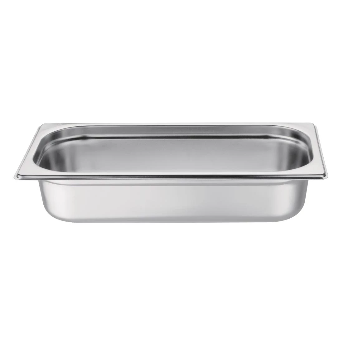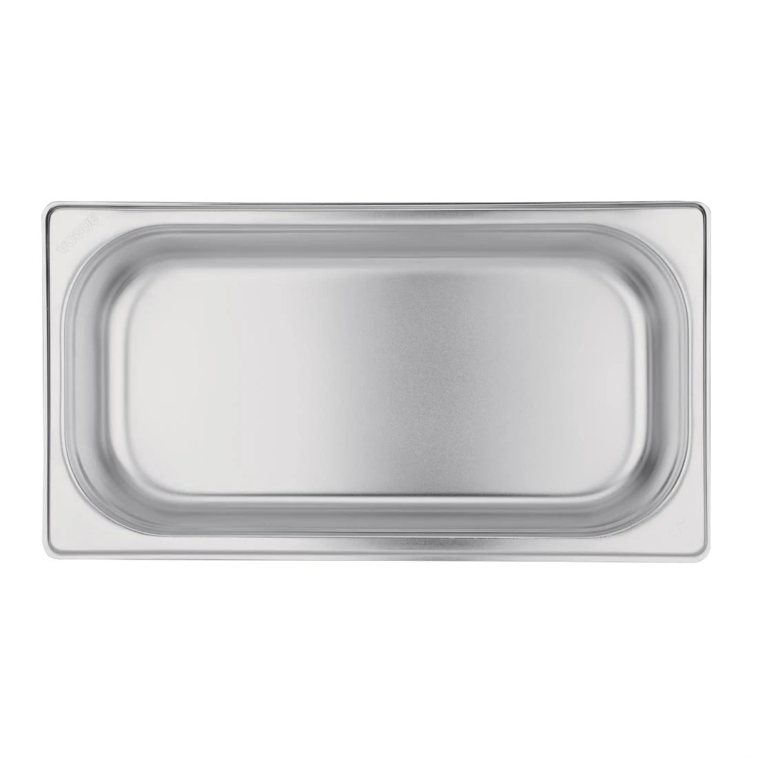 With great heat retention and convenient storage, the Vogue stainless steel 1/3 gastronorm pan (65mm/2.5 litres) is the perfect piece of equipment for professional kitchens.