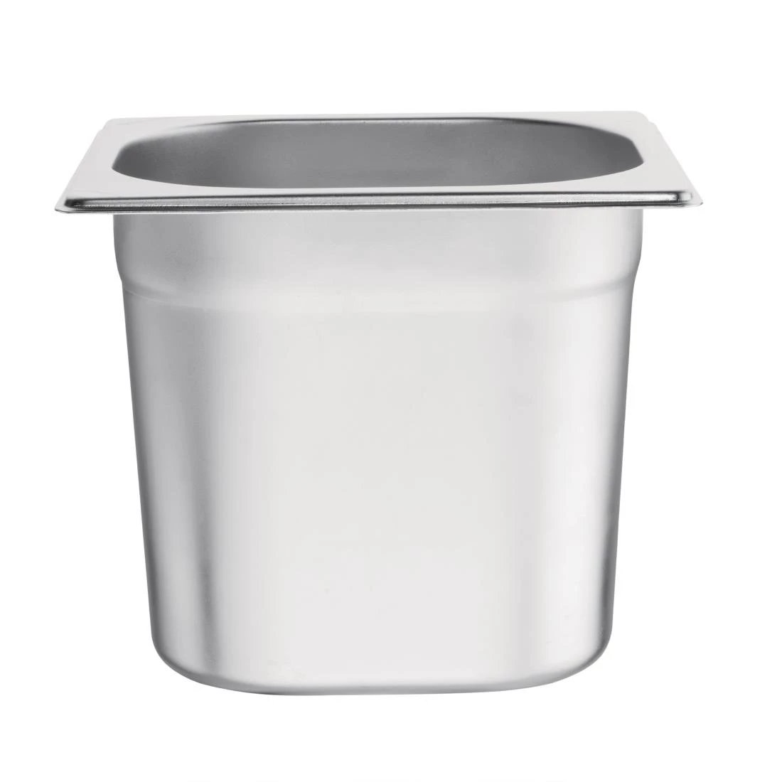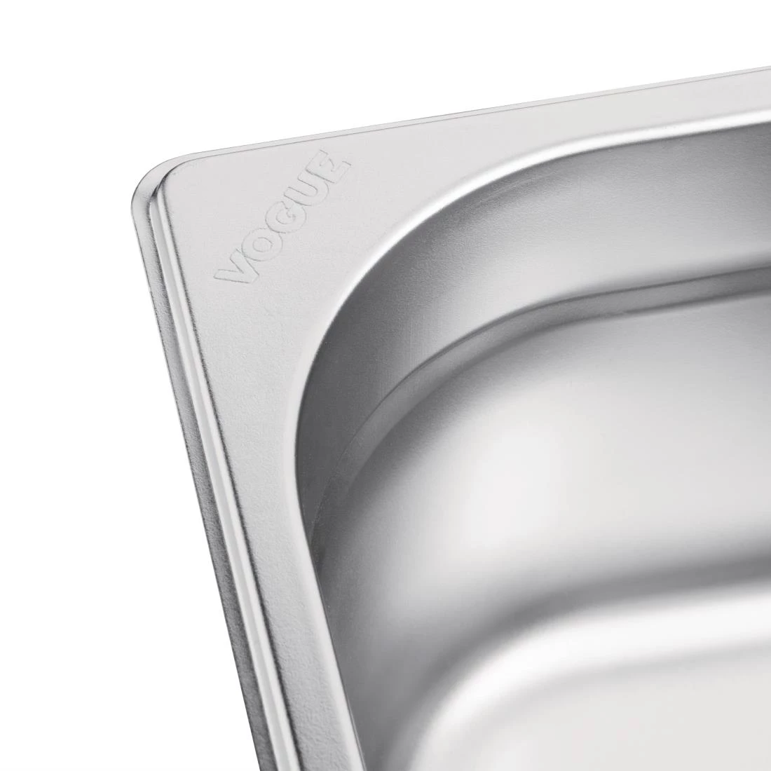 Vogue’s stainless steel 1/6 gastronorm pan (150mm/2.2 litres) provides the ability to compactly and reliably store food in professional catering environments.