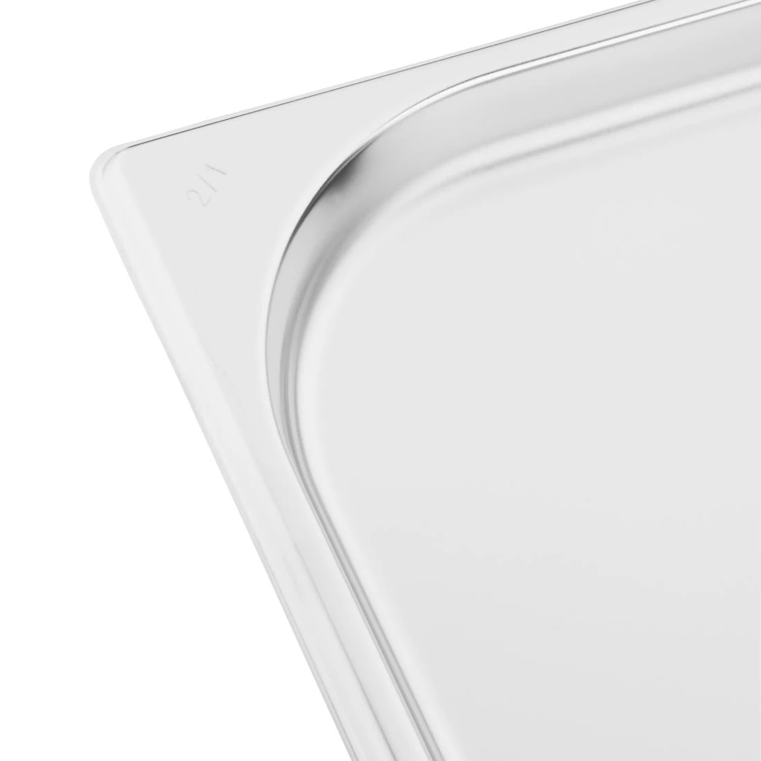 The reliable Vogue Stainless Steel 2/1 Gastronorm pan (20mm/5.4 litres) provides an ideal storage solution for professional catering environments.