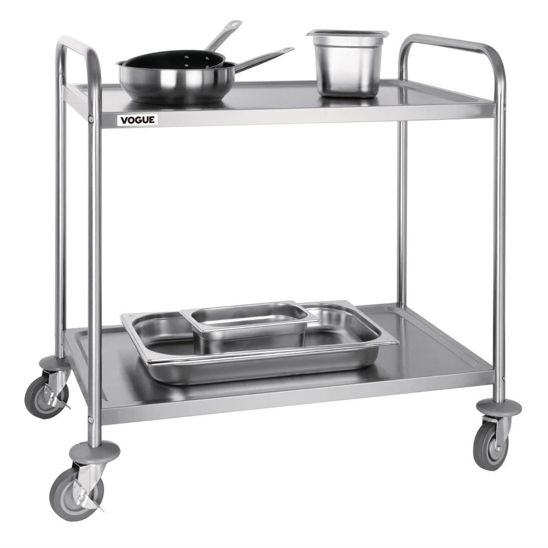 Stainless steel 2 tier clearing trolley, ideal for many applications.